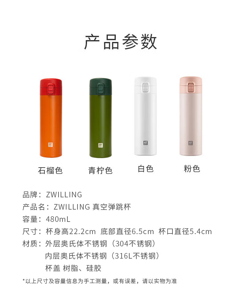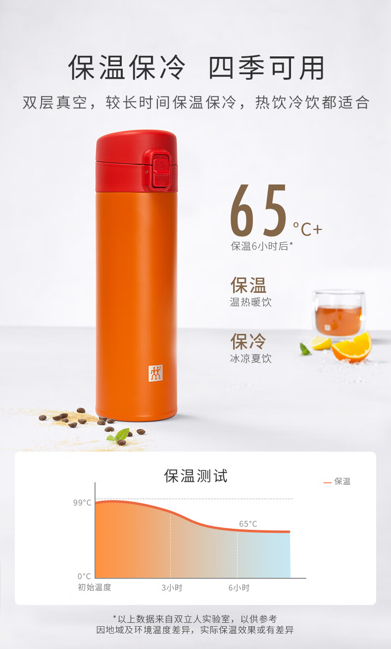 双立人 Enjoy系列真空保温弹跳杯黑色480ml ZW-BP111/1014240