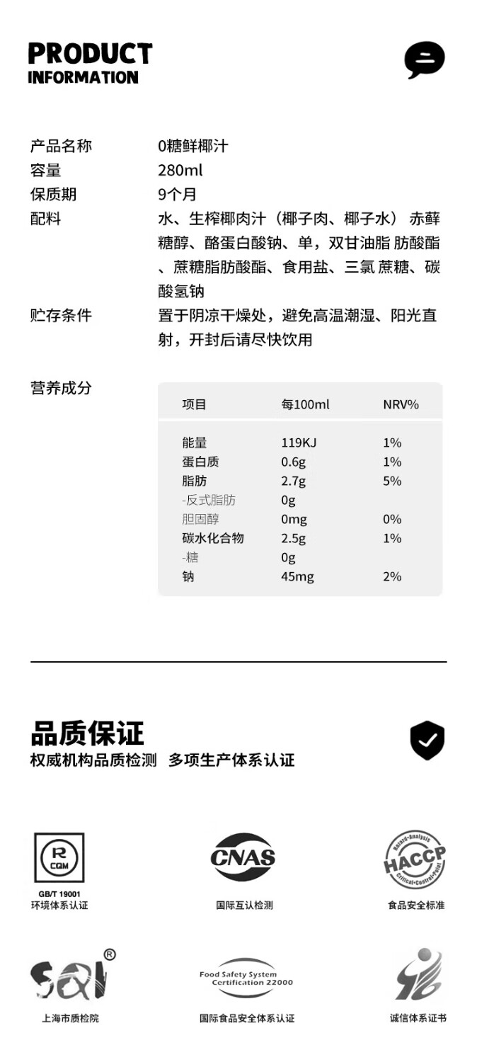 椰子知道0糖鲜椰汁 多规格可选
