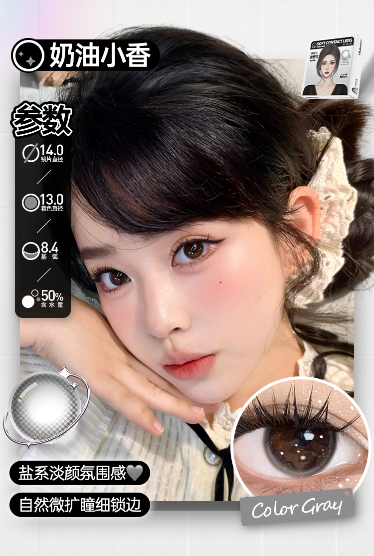 新款【奶油小香】14.0小直径日抛美瞳6片装