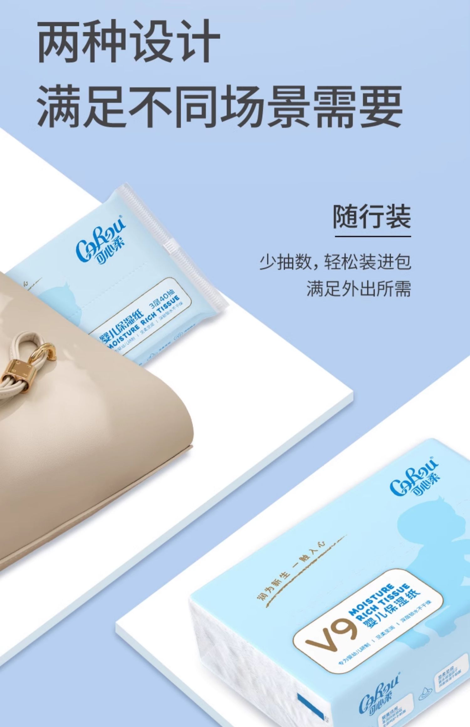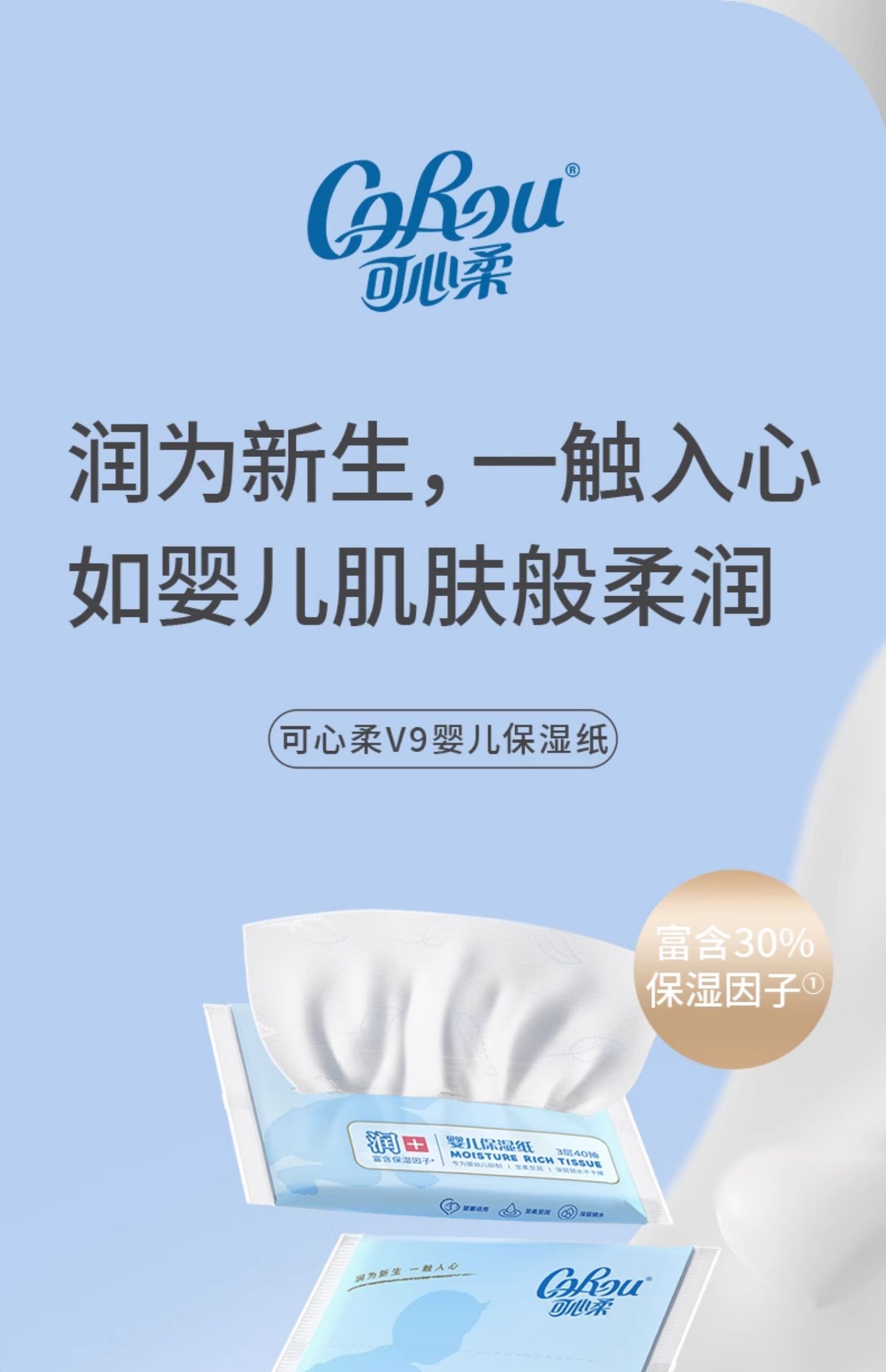 可心柔(COROU)V9婴儿纸巾柔纸巾抽纸保湿云柔巾乳霜纸新生儿3层40抽30包便携装V9137-30
