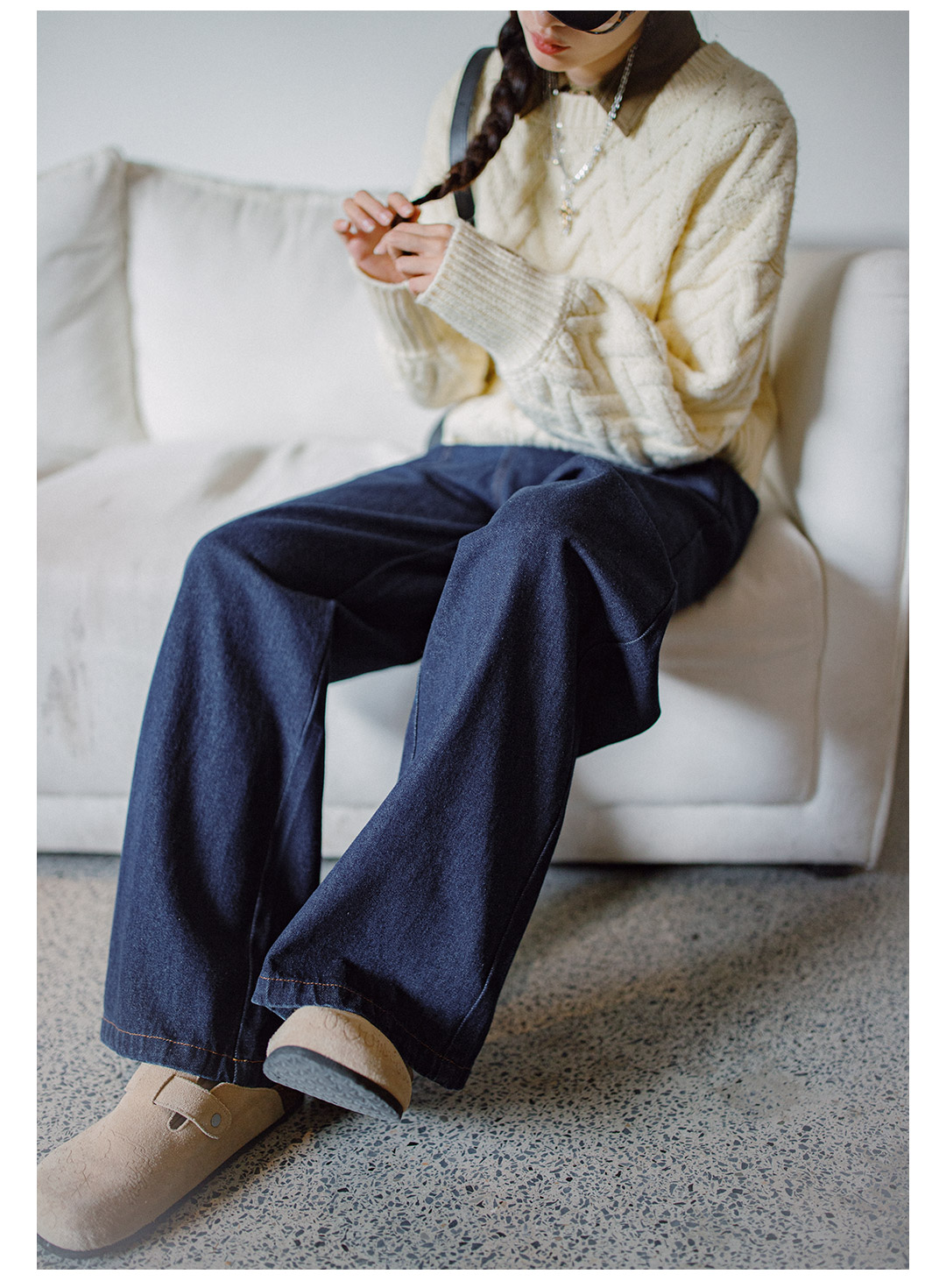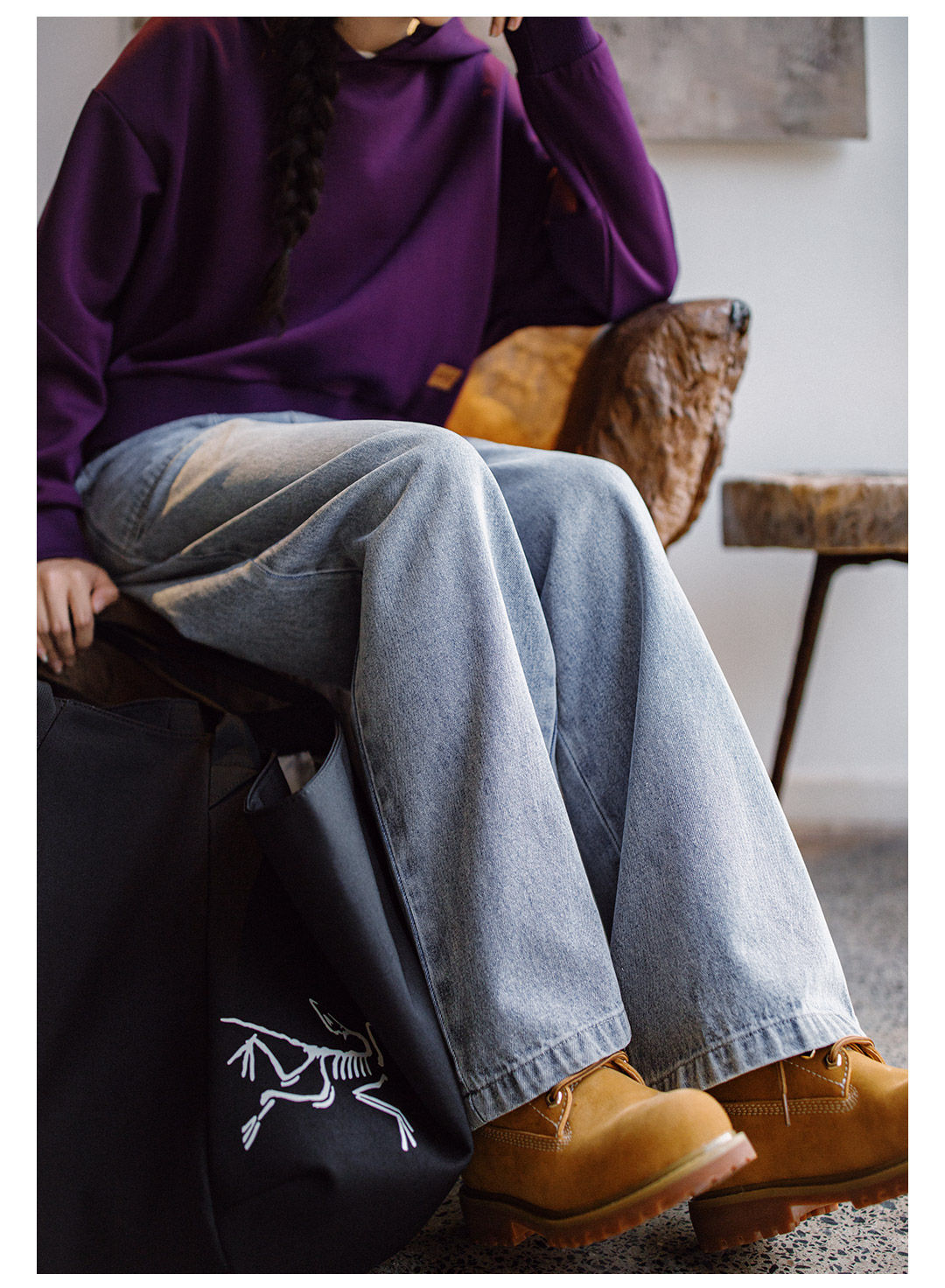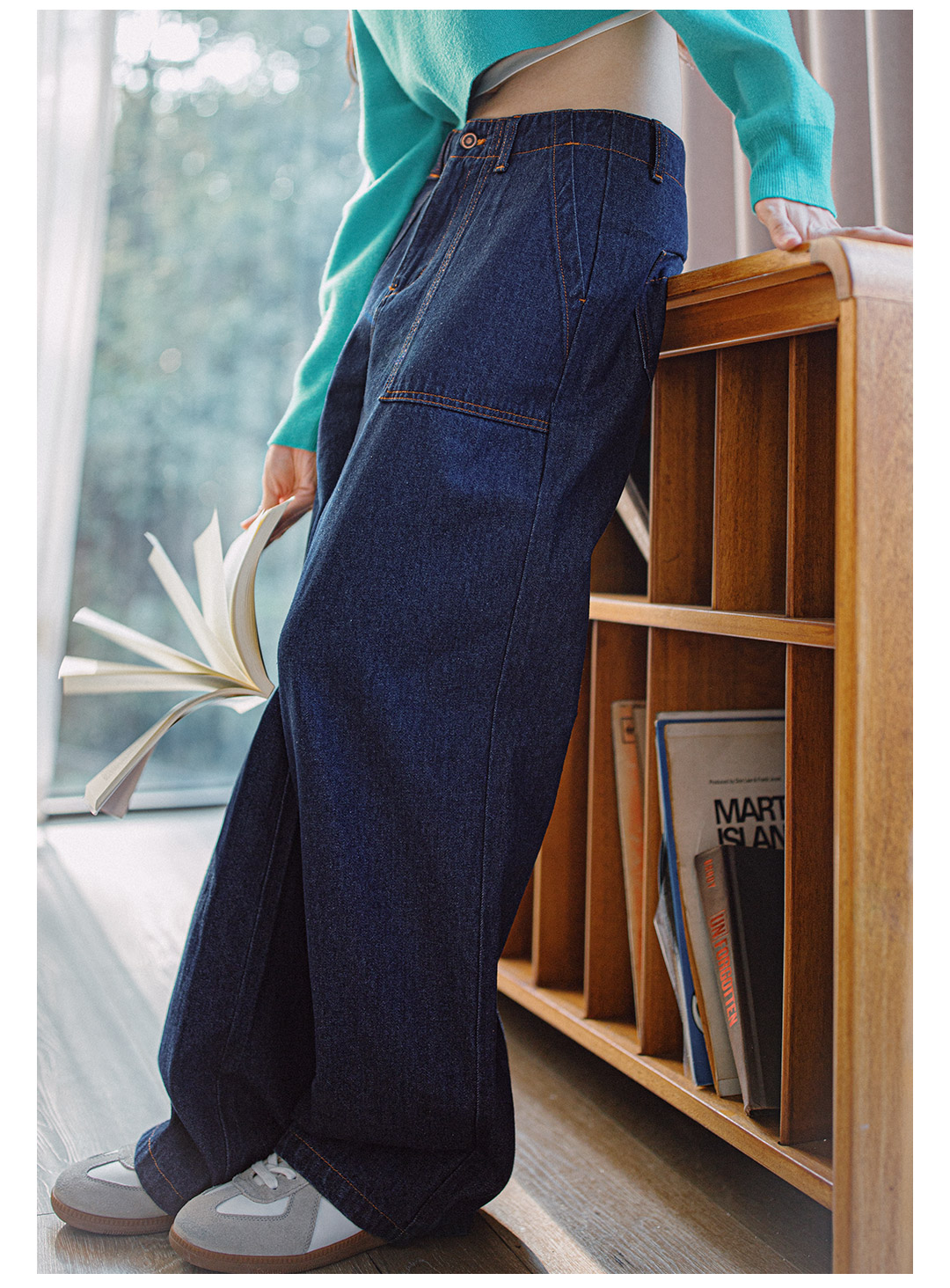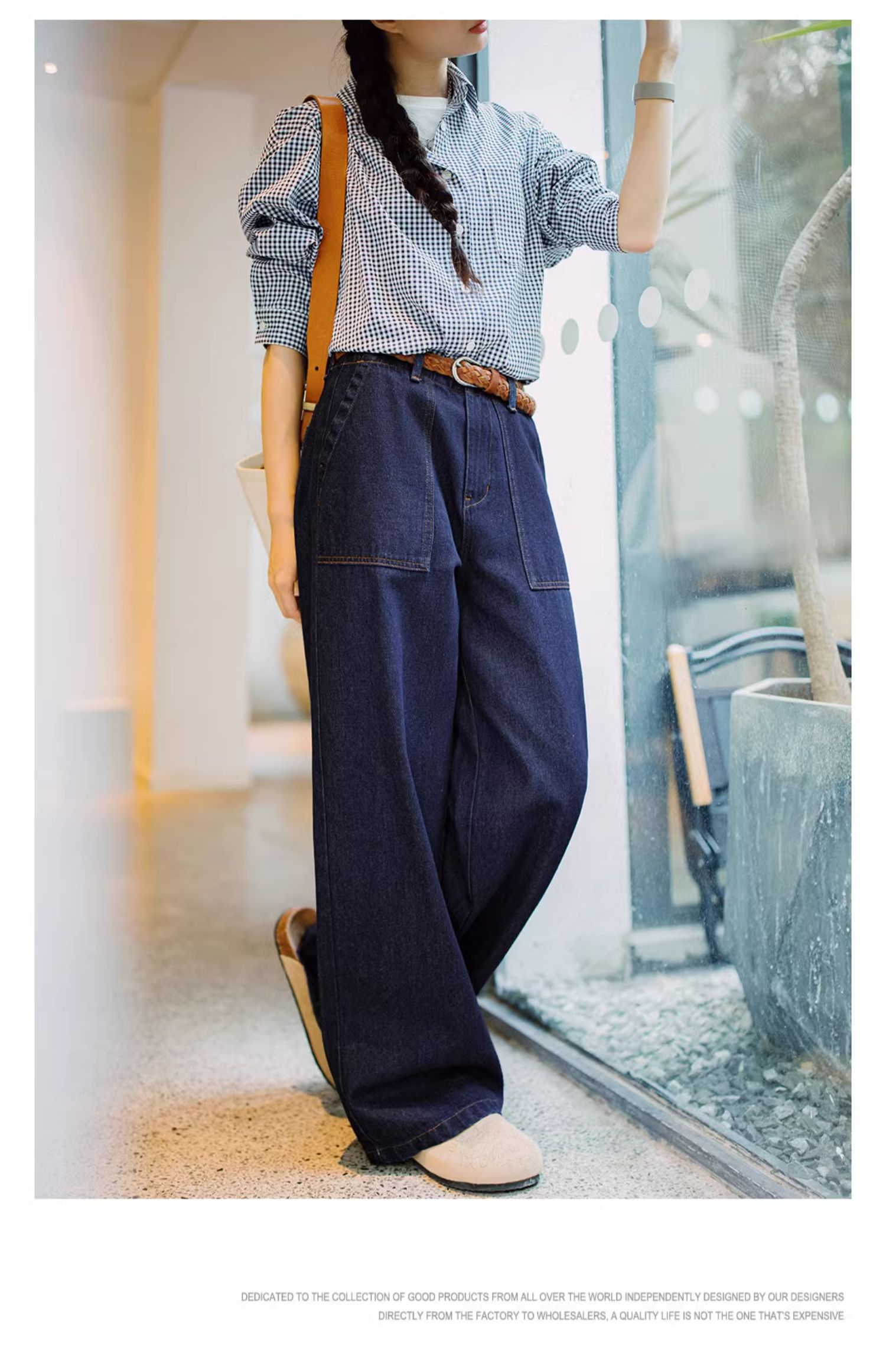 马登复古法工裤窄版直筒牛仔裤水洗垂感阔腿裤宽松休闲长裤秋冬女