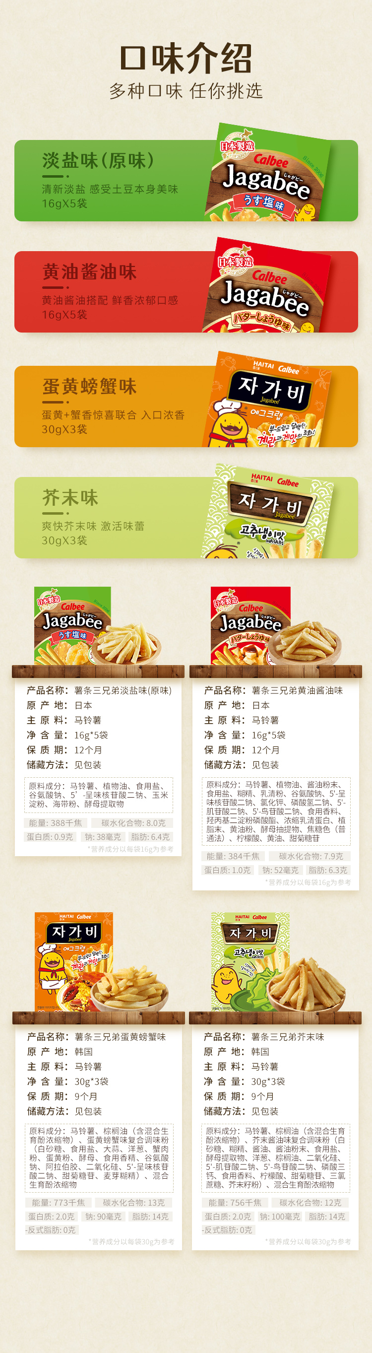 Calbee卡乐比薯条三兄弟盒装淡盐味酱油味80g/盒