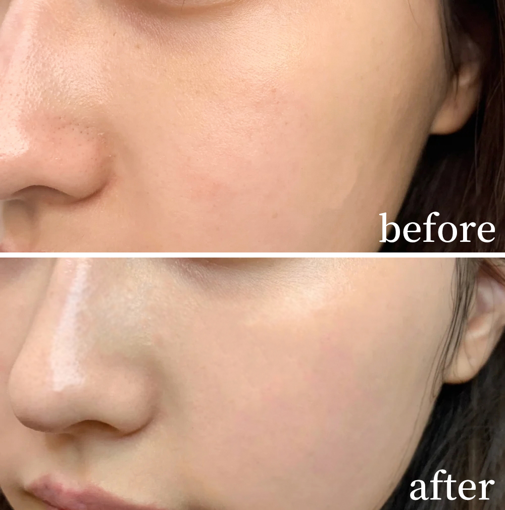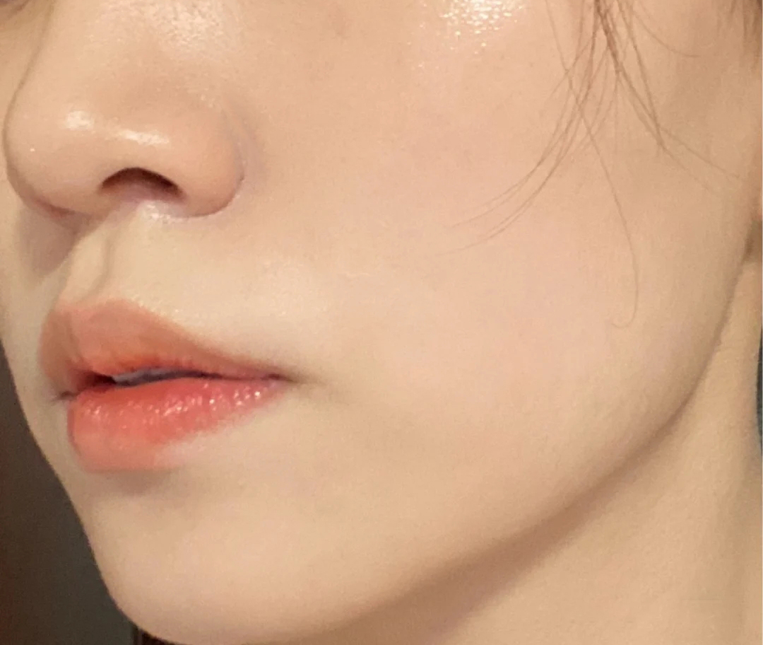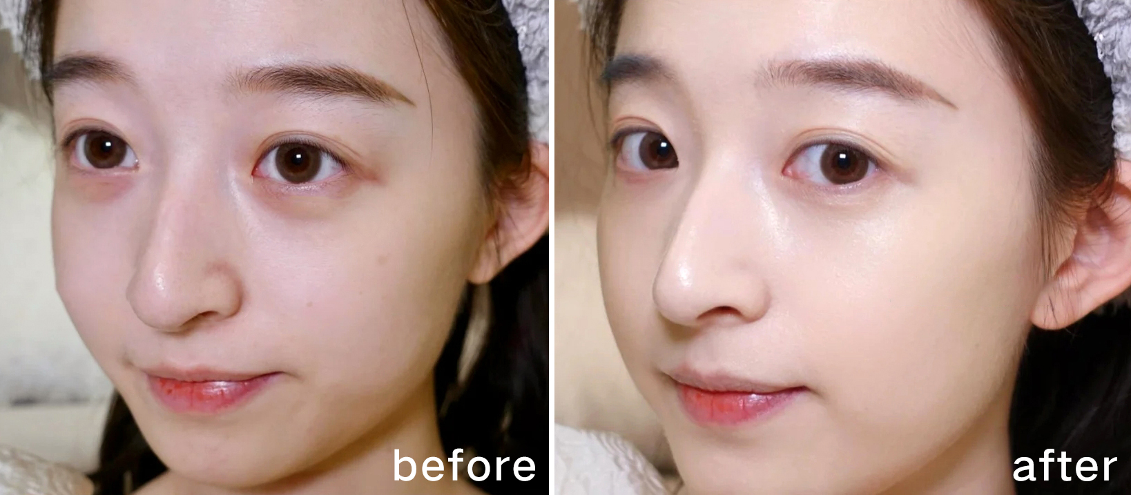 抹匀后,脸蛋一下就从黯淡无光、好无生机,变成了水润明亮、充满光泽的状态,仿佛开了柔光。