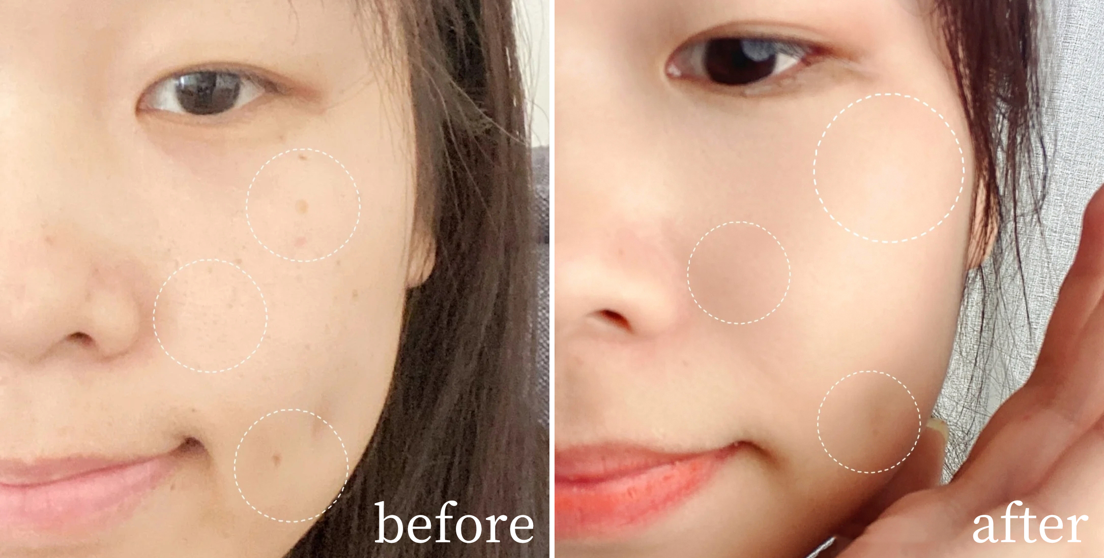 在需要遮瑕这些的地方稍微多按压一下,原本显眼的痘印、斑点,轻轻松松就被藏了起来。