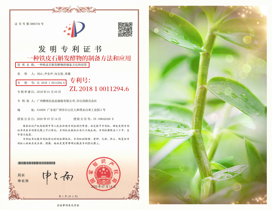 搭配拥有专利的铁皮石斛发酵物,更能进一步提亮肤色。