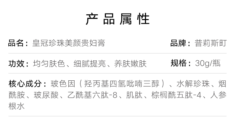 先是即时提亮成分,普莉斯町选用的是大牌才会有的水解珍珠。