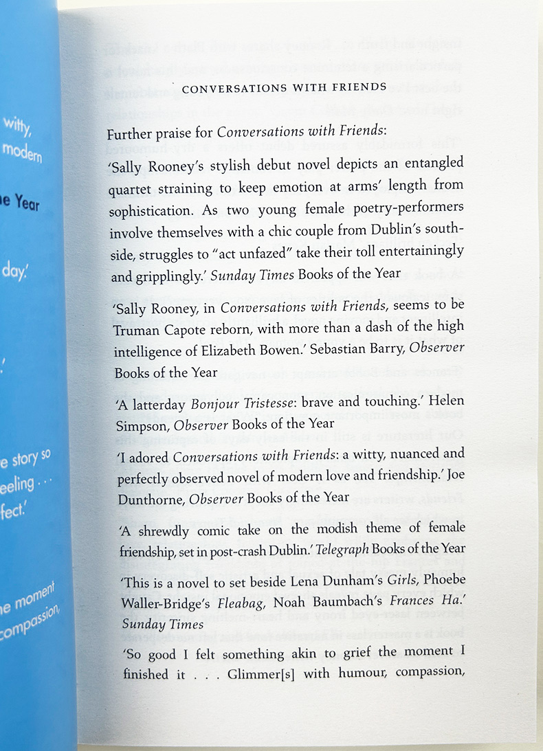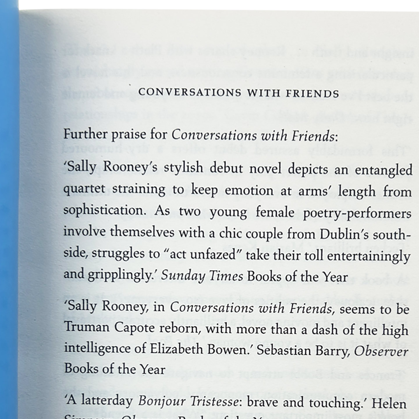 鲁尼出色地描写了一个有才华、但有自残倾向的年轻女人,捕捉了她的精神与生理状态。她敏锐地意识到,表面的自由其实受制于肉眼看不见的栅栏。……鲁尼能言善辩的人物们或许没能表达脆弱的自己,她却用独有的声音替他们发声。