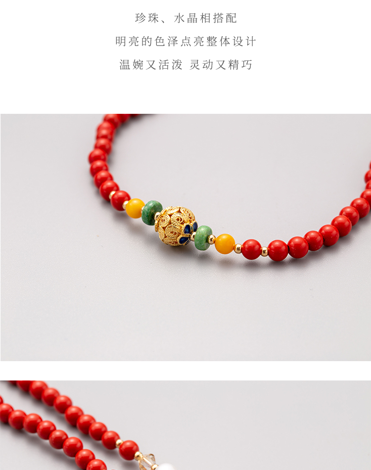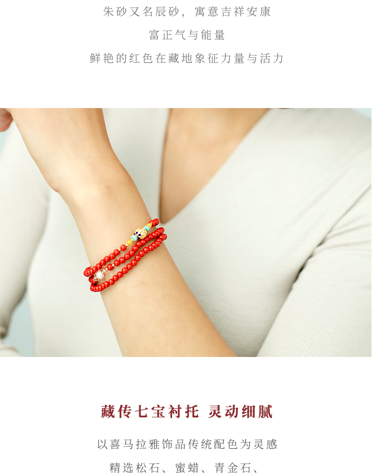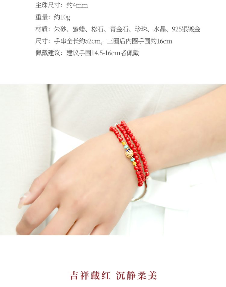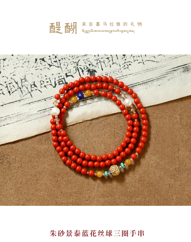 朱砂花丝三圈手串 搭配天然青金石蜜蜡松石珍珠 宫廷风时尚大气 醍醐原创国庆闪购饰品