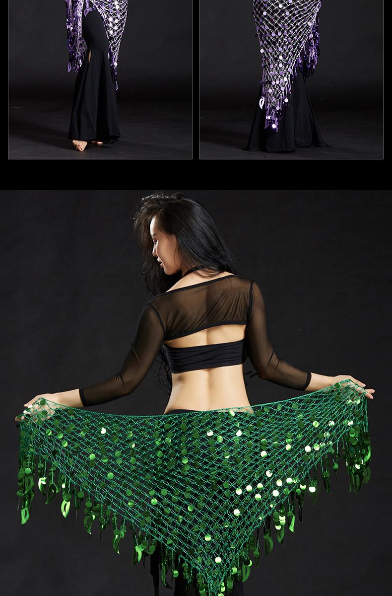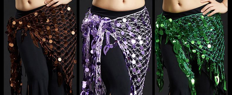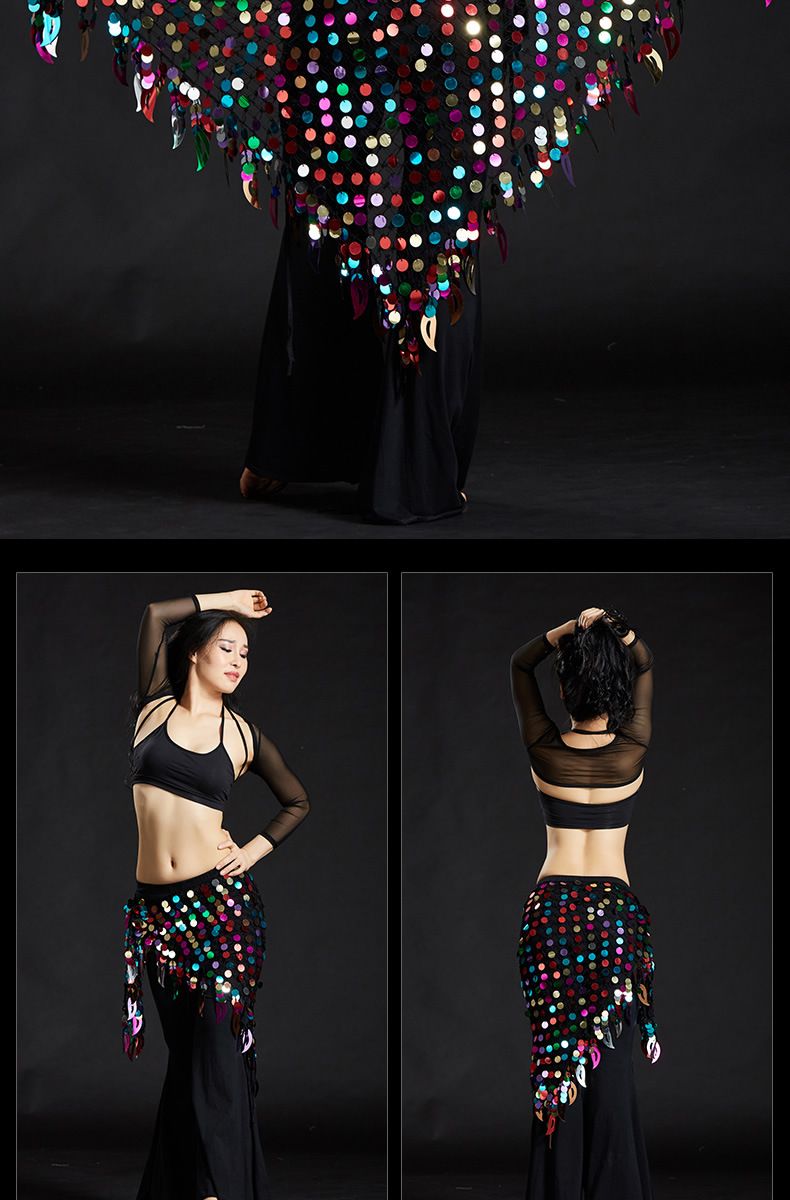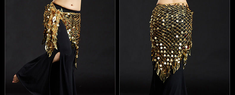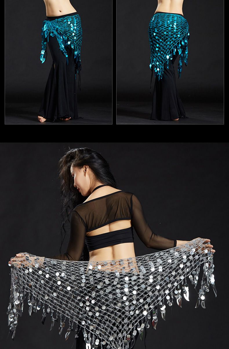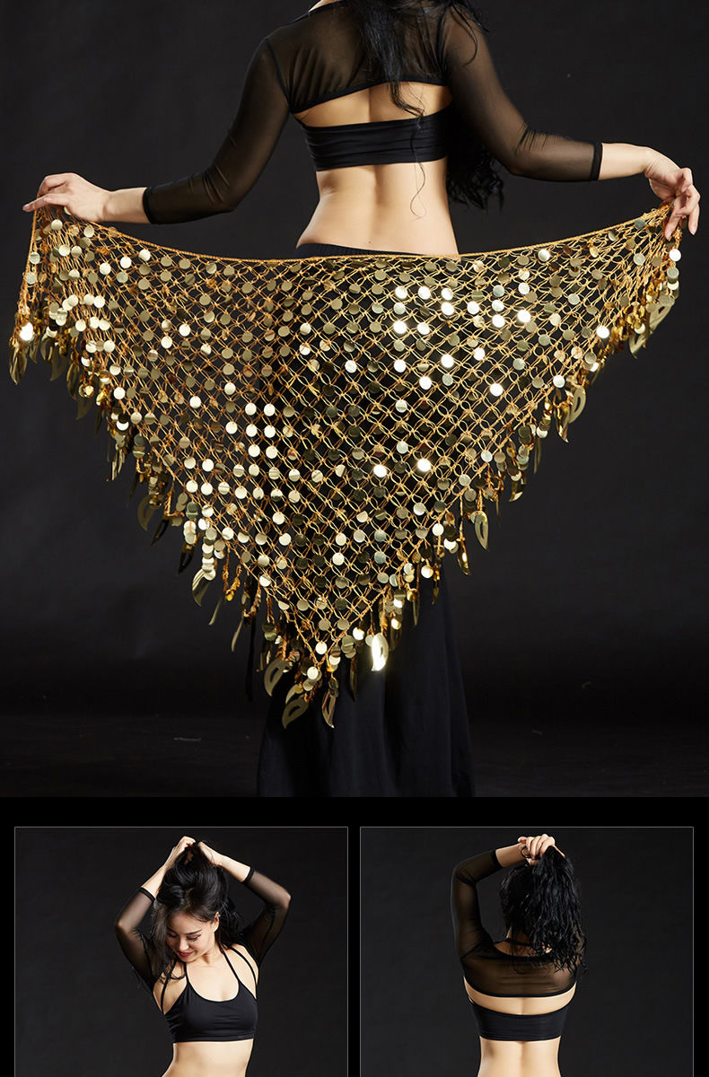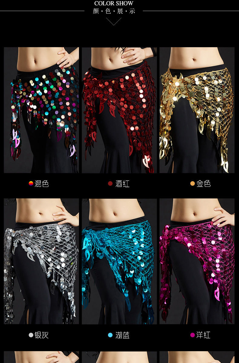 肚皮舞腰链臀巾新款渔网亮片三角巾铜锣片流苏腰带腰巾