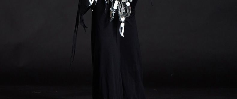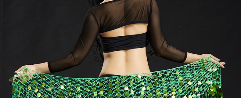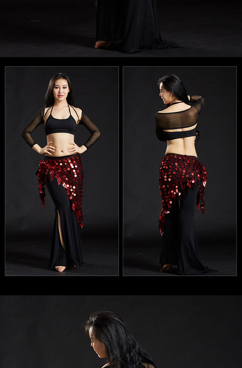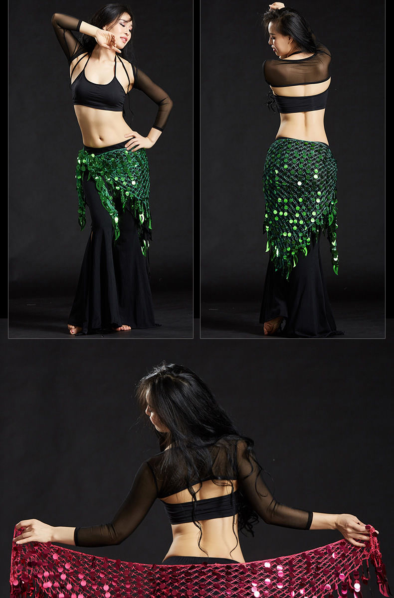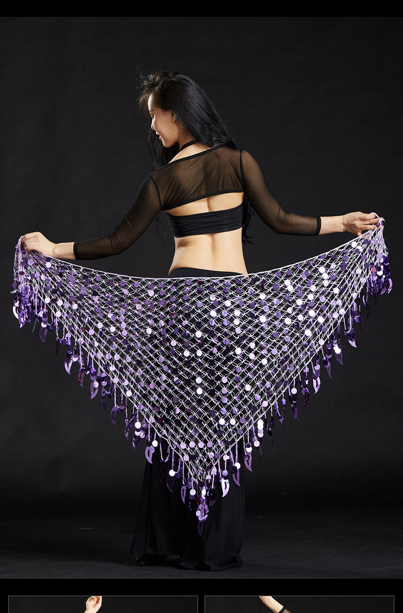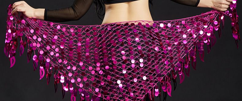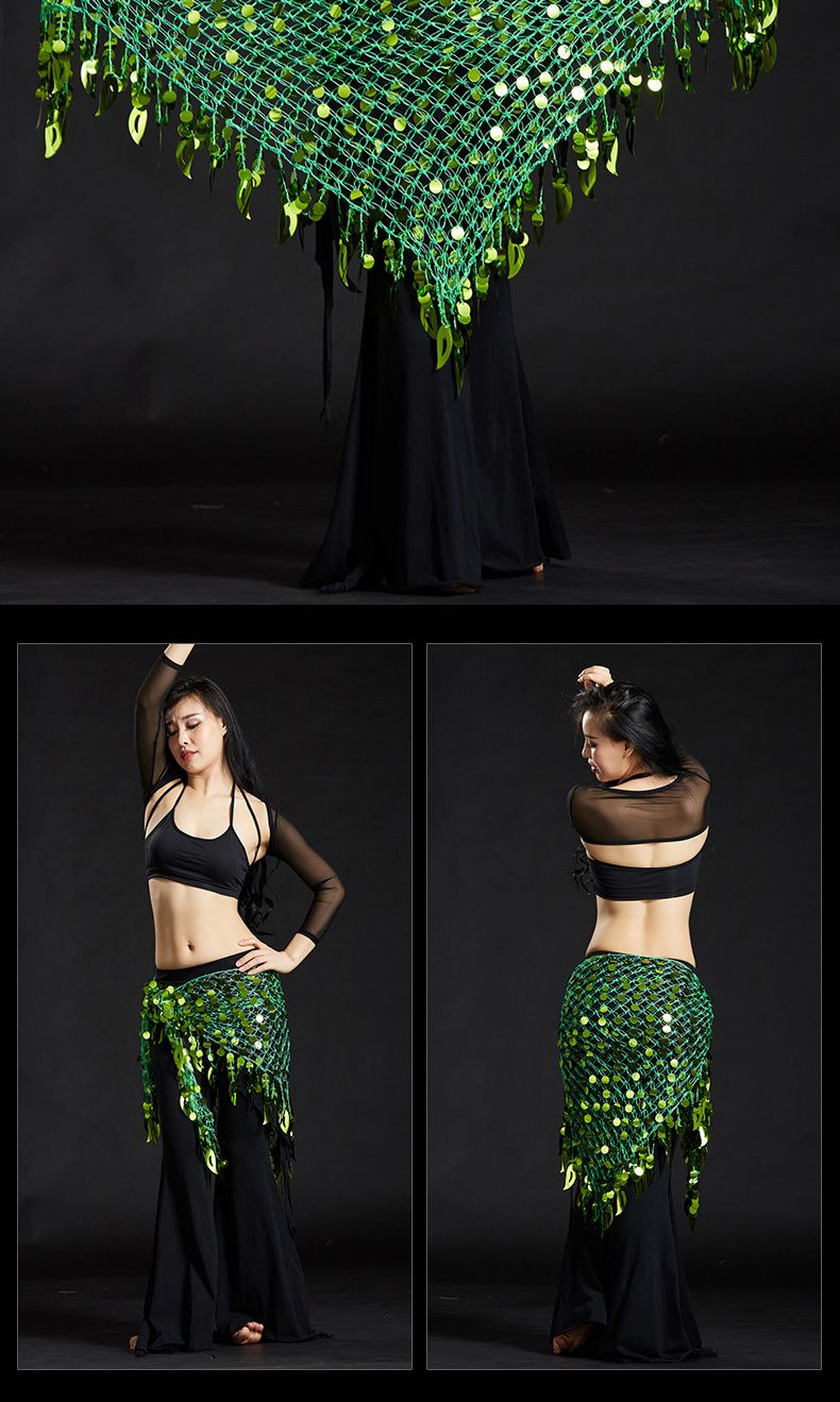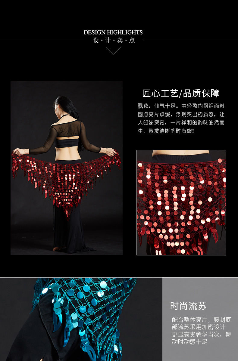 肚皮舞腰链臀巾新款渔网亮片三角巾铜锣片流苏腰带腰巾