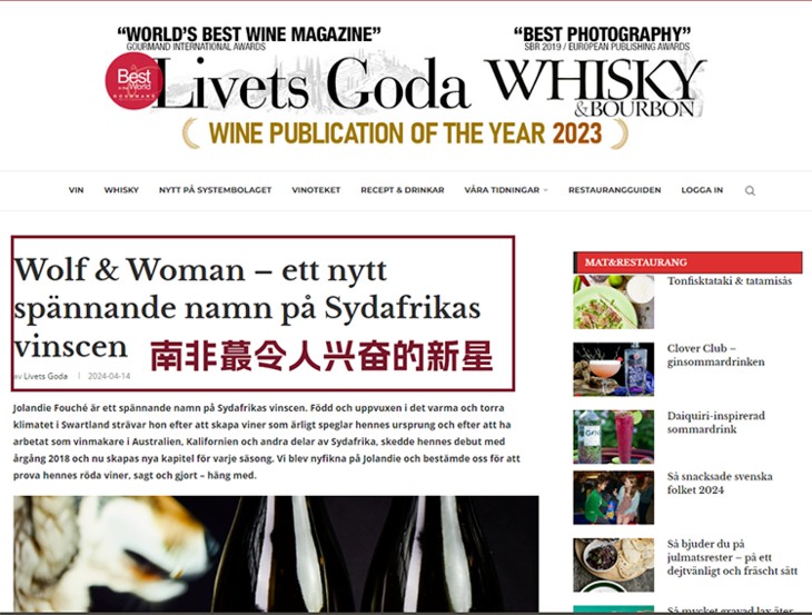 Jolandie本人也奉行极简主义:即不使用新橡木桶、不额外添加任何化学药剂,Livetsgoda杂志更将其评价为“Wolf&Woman是南非葡萄酒界令人兴奋的新星”。