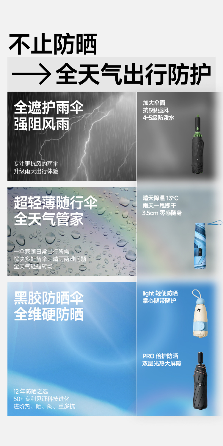 【25年新品】蕉下黑胶卡片防晒伞BM666