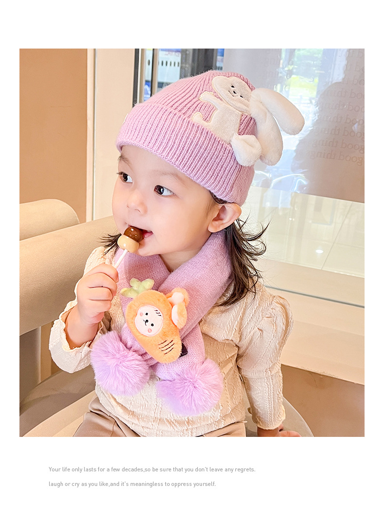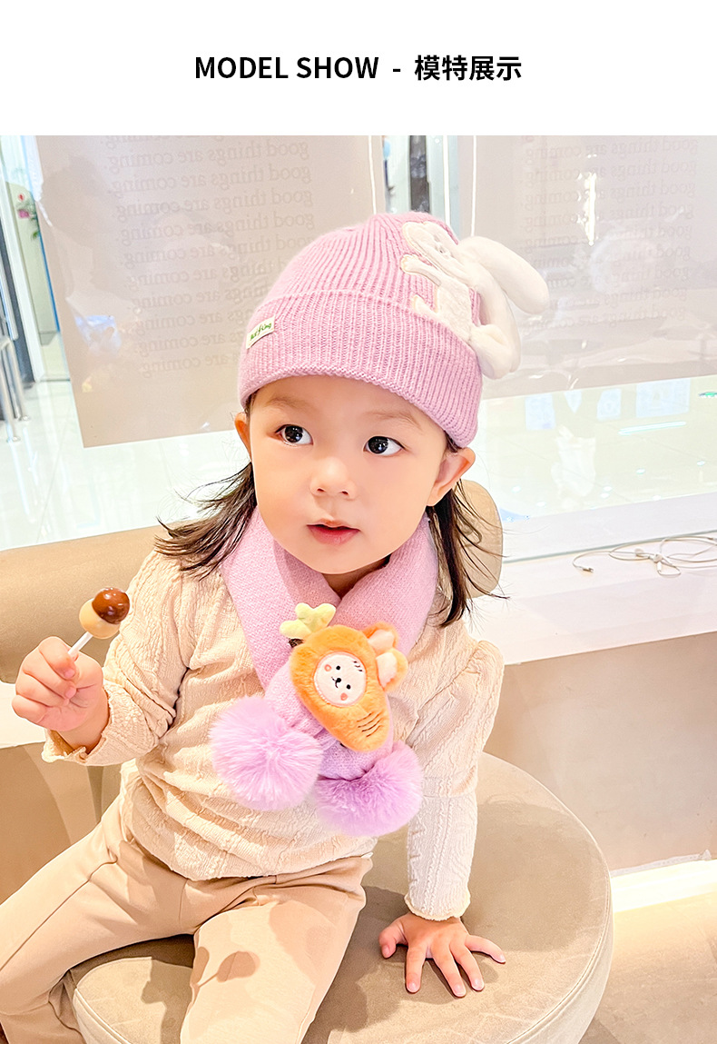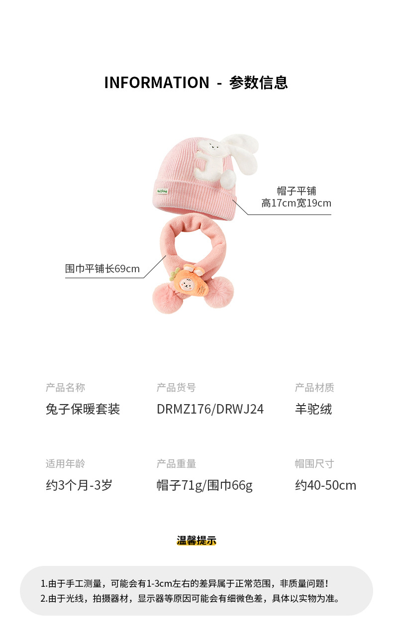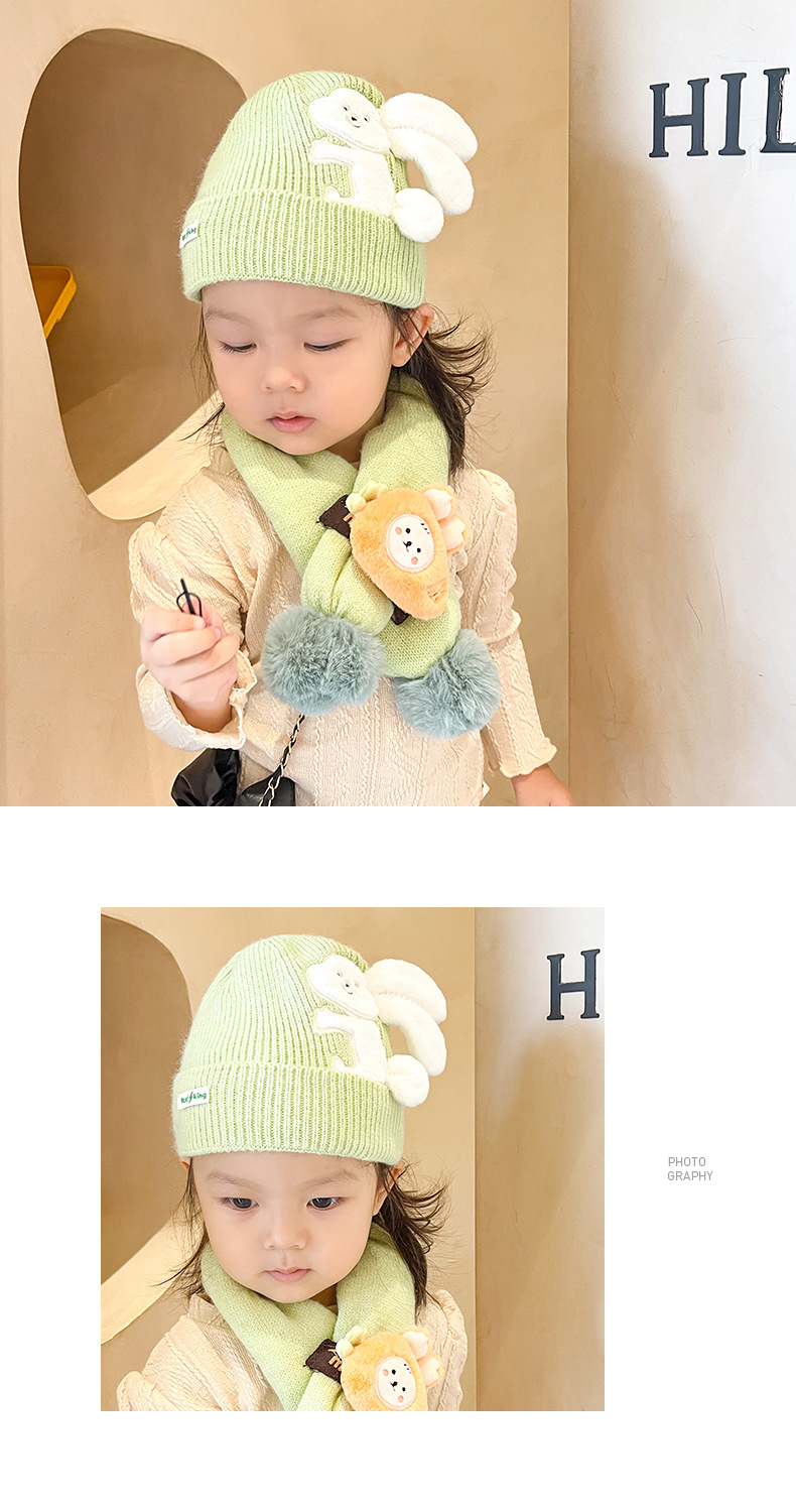 【可爱兔子保暖套装】婴儿帽子围脖两件套秋冬春秋薄款冬季宝宝纯棉婴幼儿男童女童套装