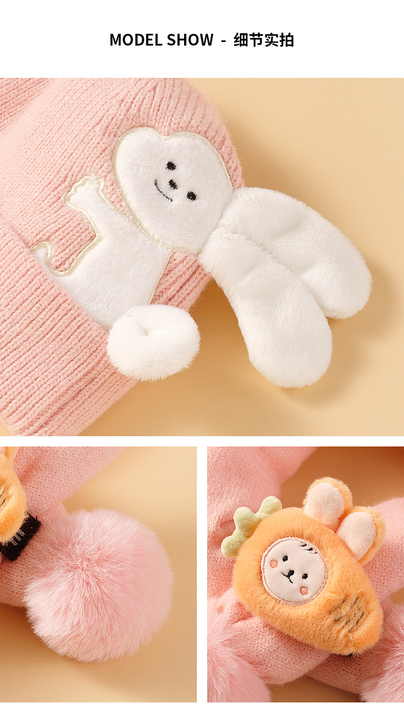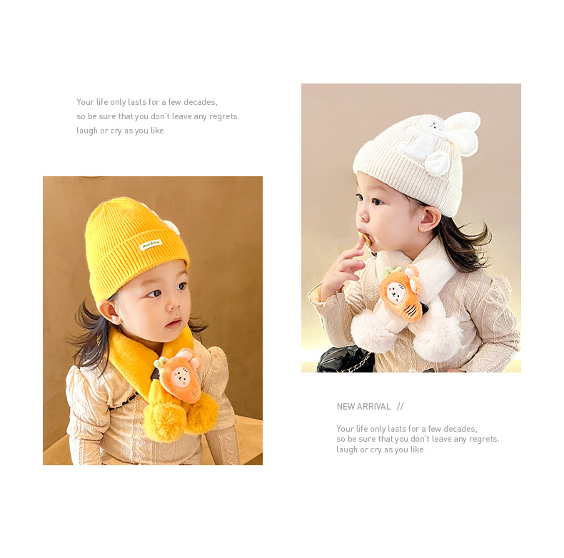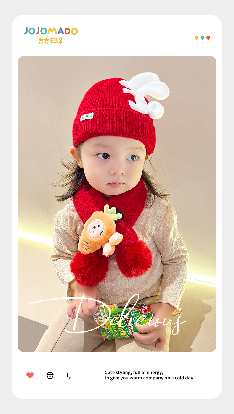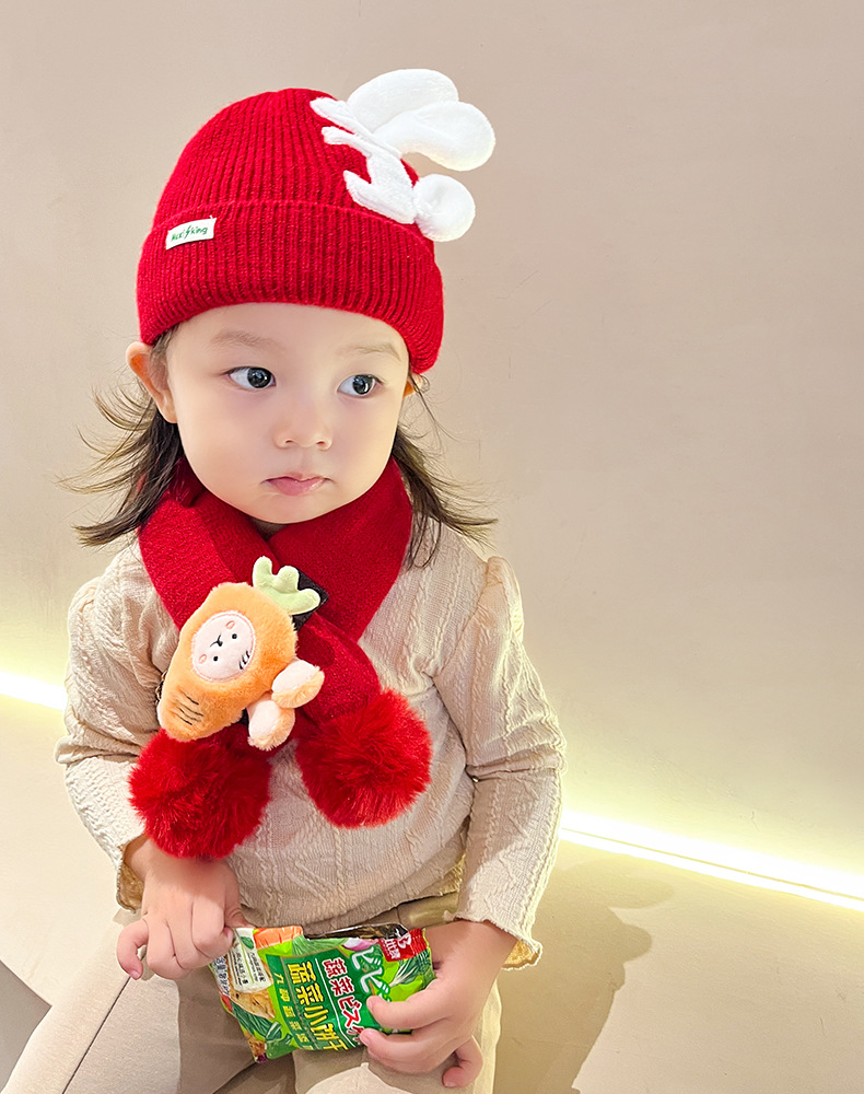 【可爱兔子保暖套装】婴儿帽子围脖两件套秋冬春秋薄款冬季宝宝纯棉婴幼儿男童女童套装