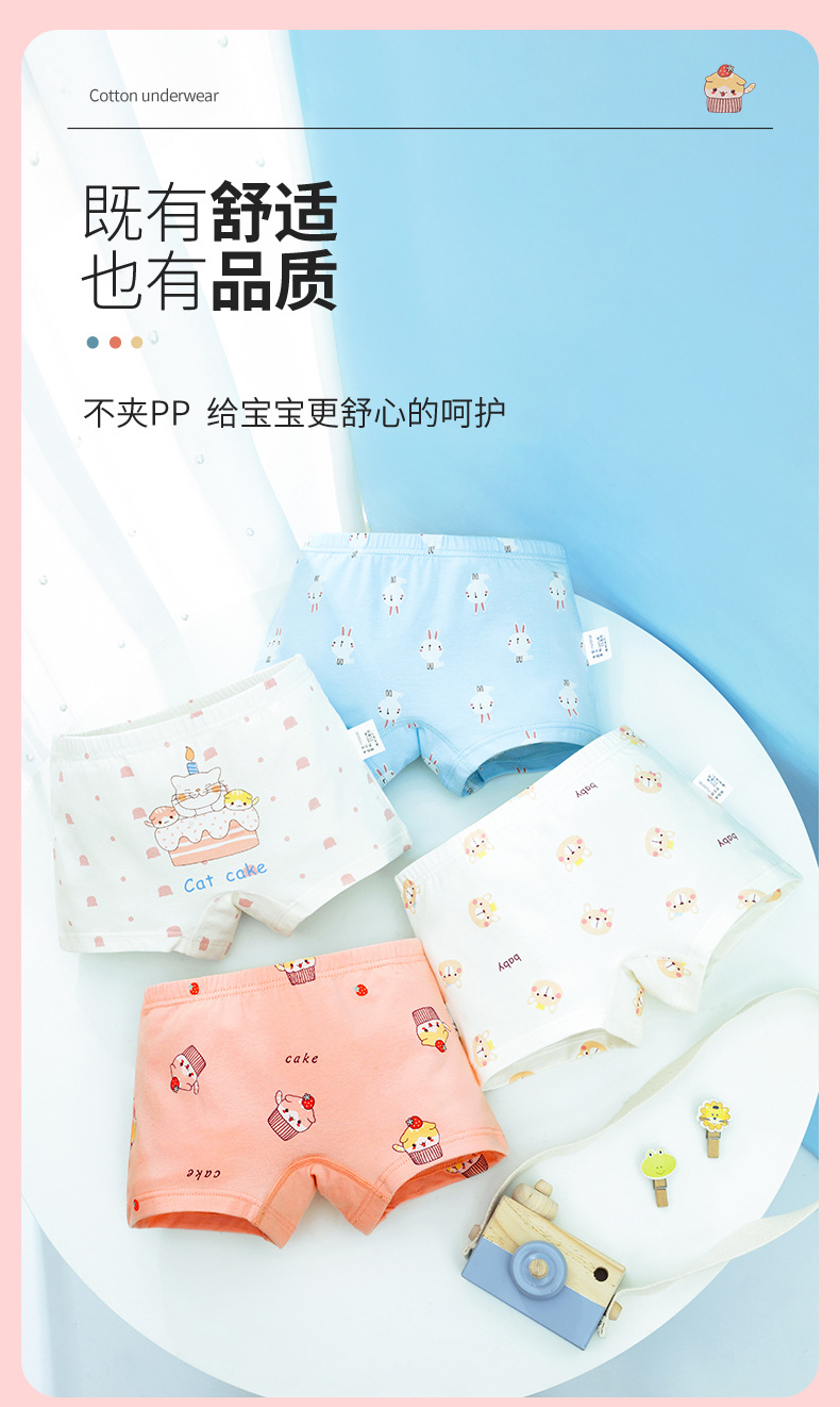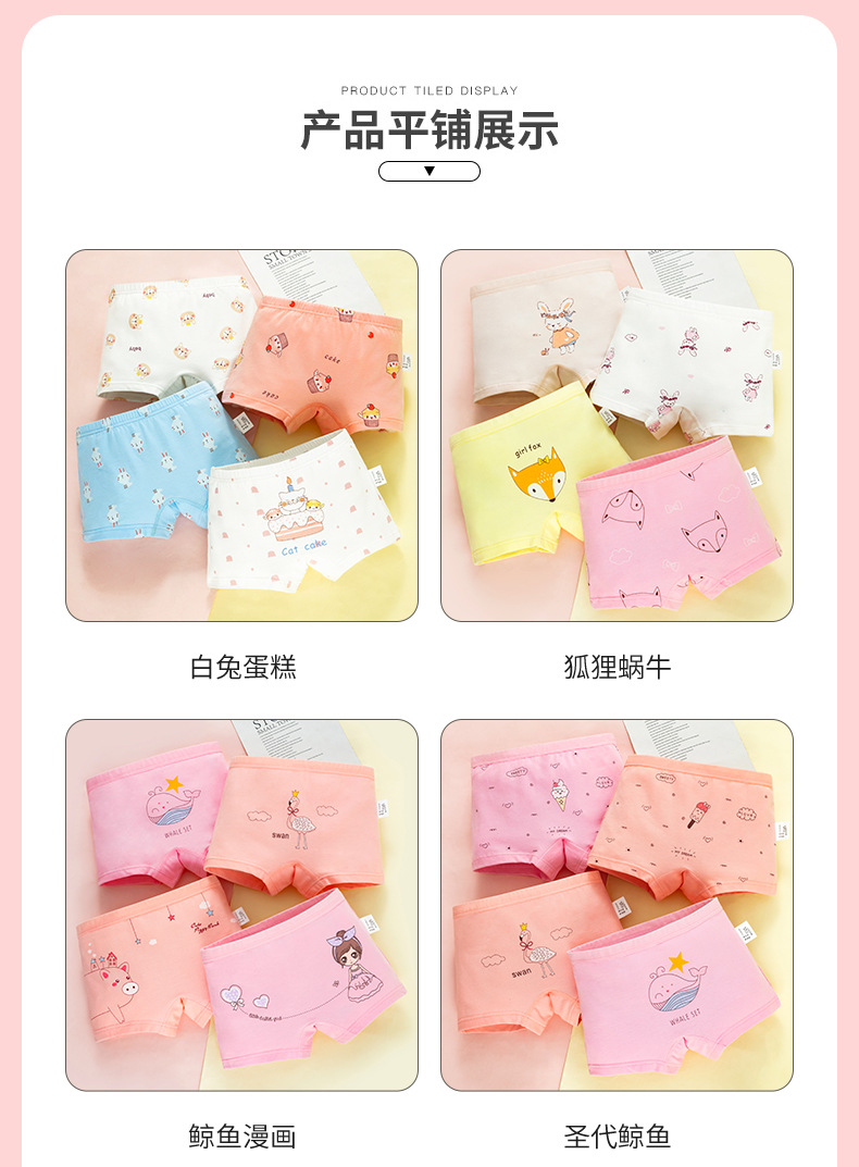 【4条装 既有舒适 也有品质】女童A类纯棉内裤平角卡通大童小女孩中童短裤纯棉儿童四角裤