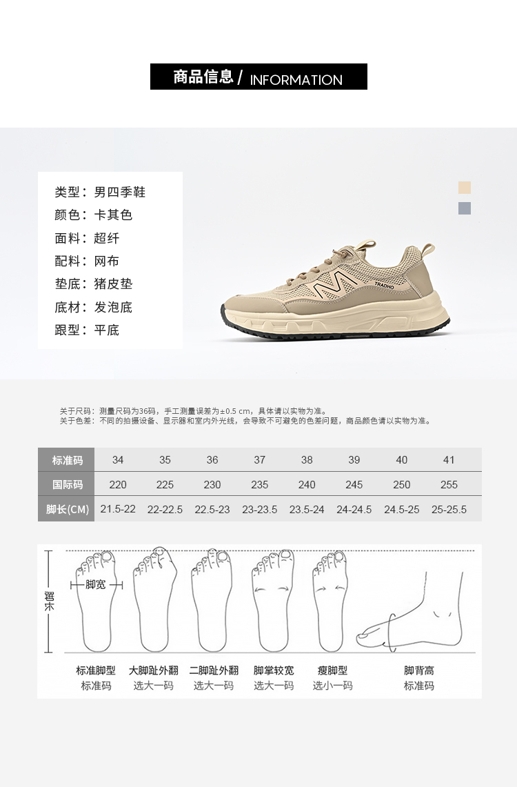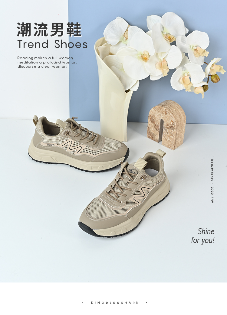 经典鲨2024年平底系带男士舒适平底休闲鞋跑步鞋KW222-D26061