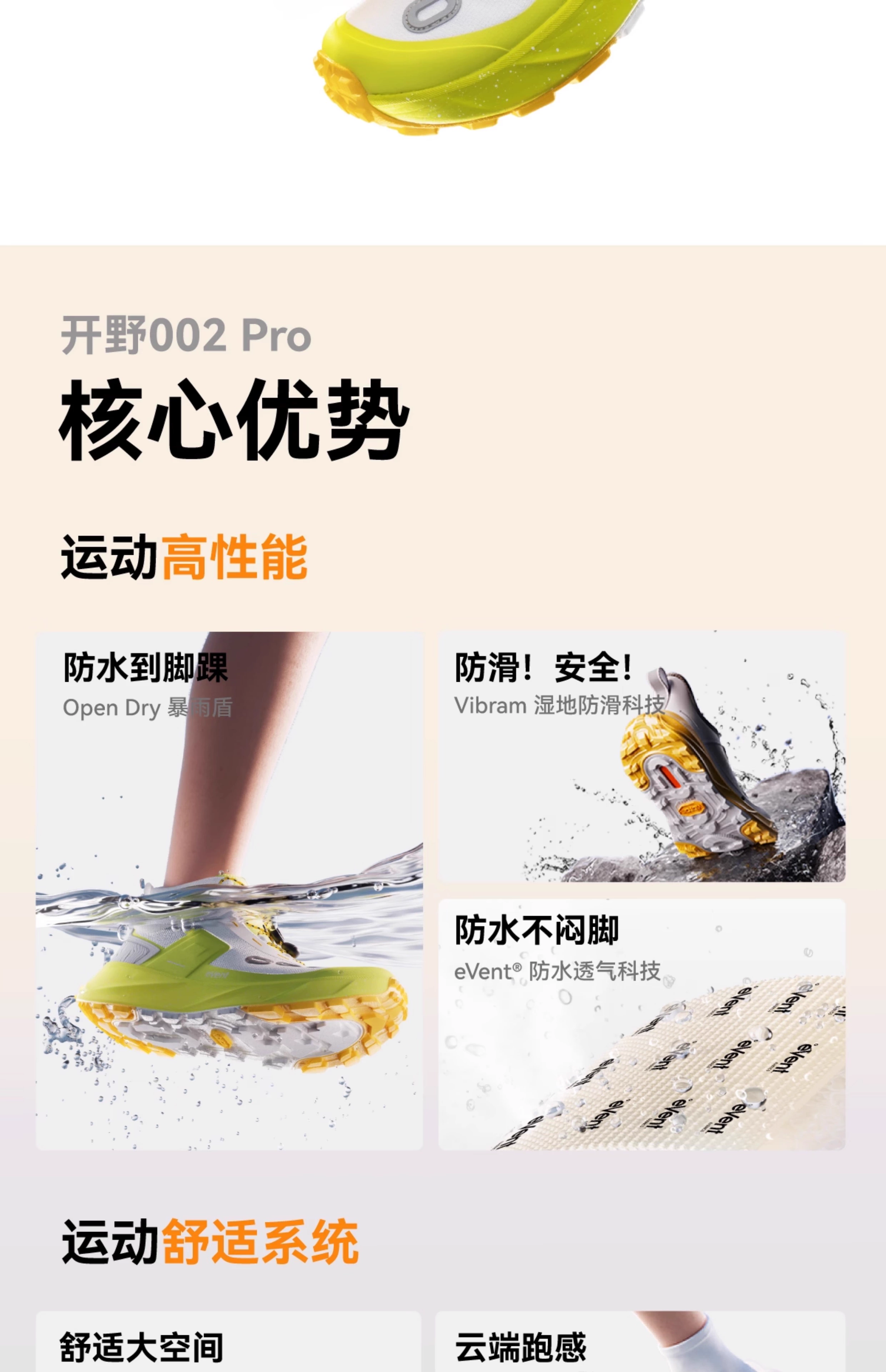 开野002pro秋冬儿童户外高帮eVent防水徒步登山旅游鞋V底防滑缓震