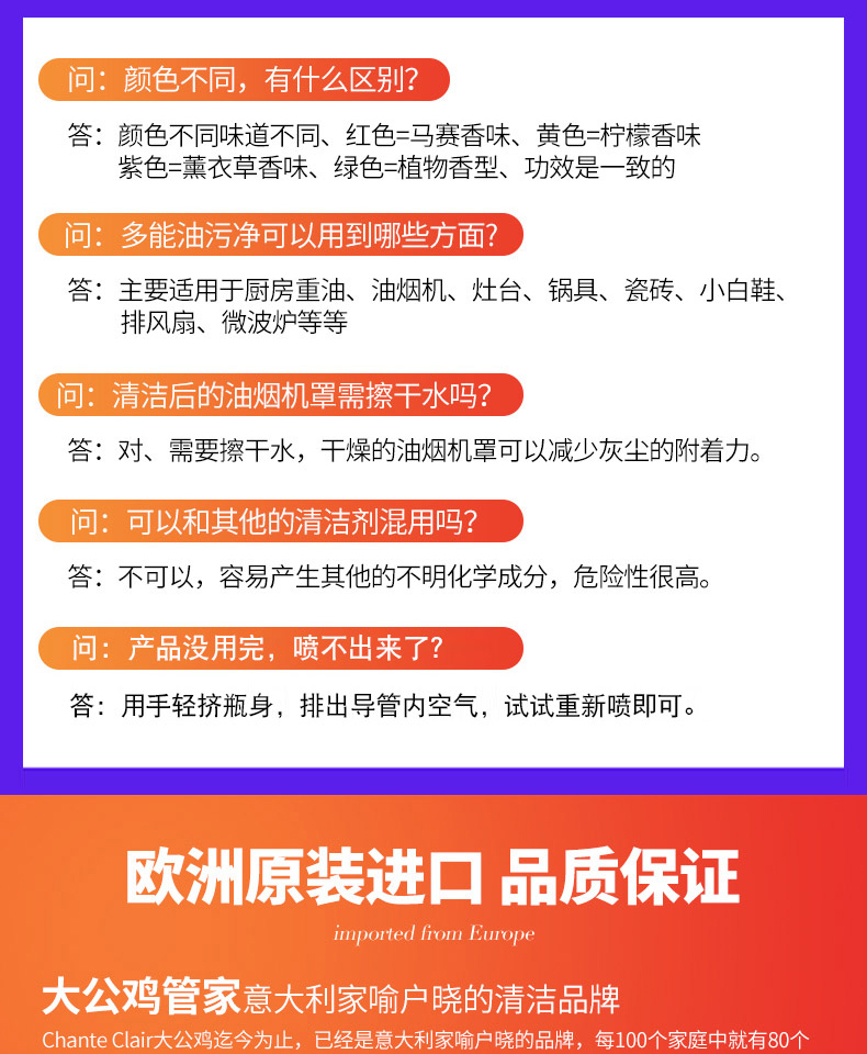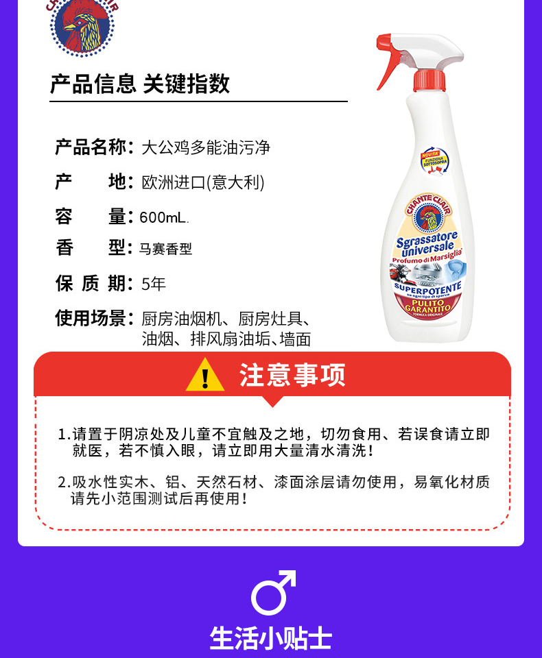 大公鸡管家600ml多能油污净 厨房油烟机强力去除油污渍