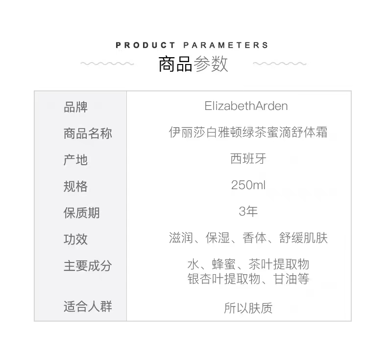 9楼母婴生活馆 伊丽莎白雅顿绿茶蜜滴身体霜250mL保湿滋润补水 吊牌价:179元 活动价:99元