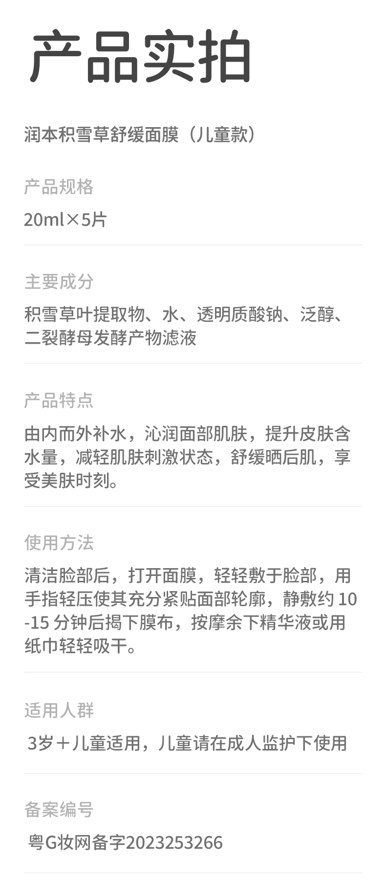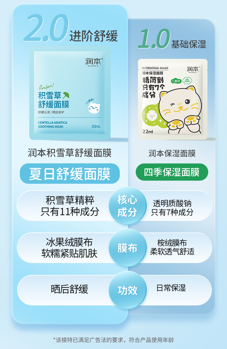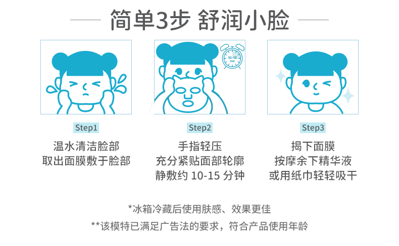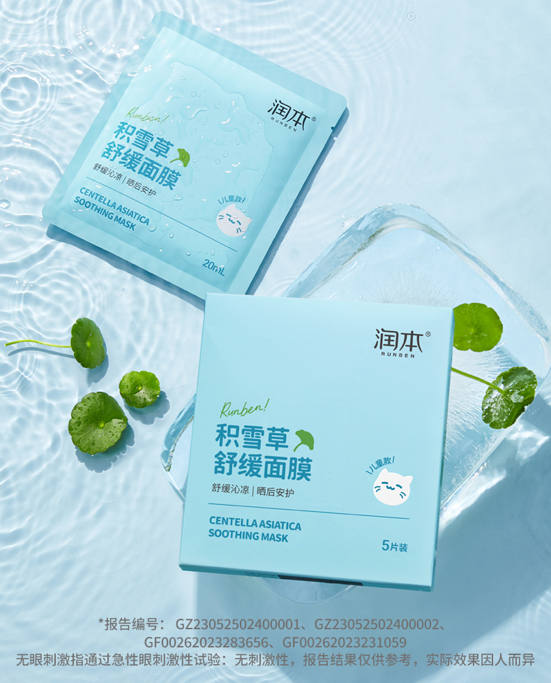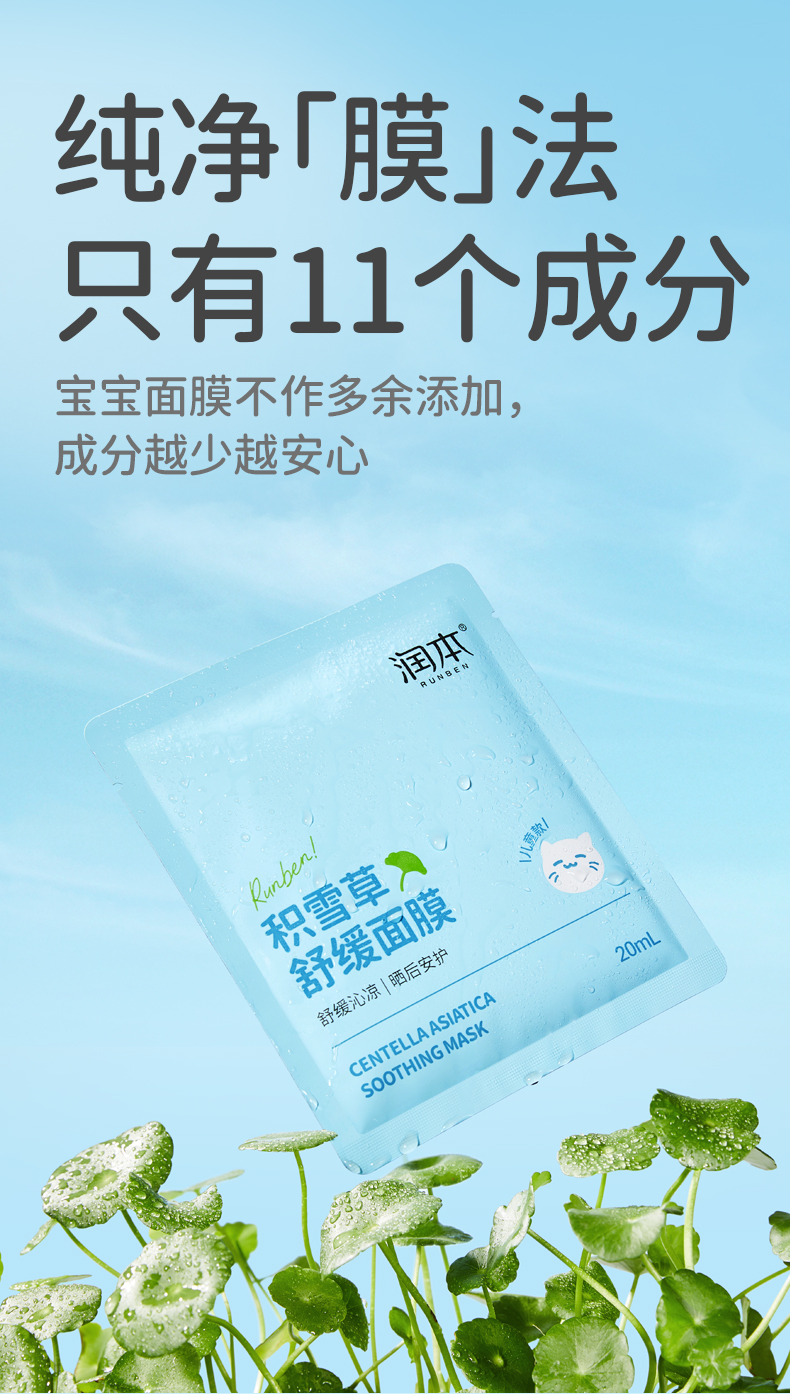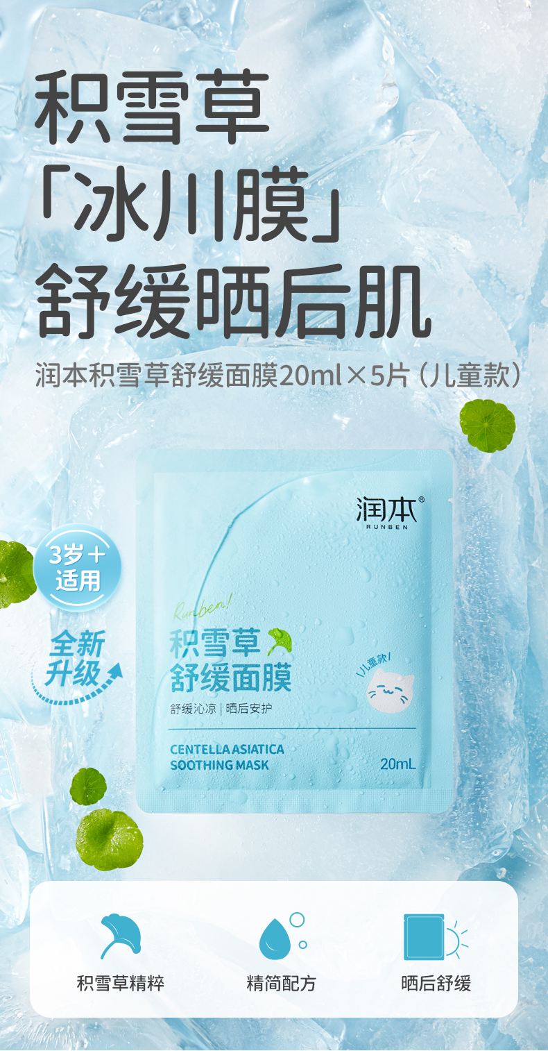 润本儿童面膜男孩女孩宝宝补水保湿专用积雪草面膜夏季晒后舒缓