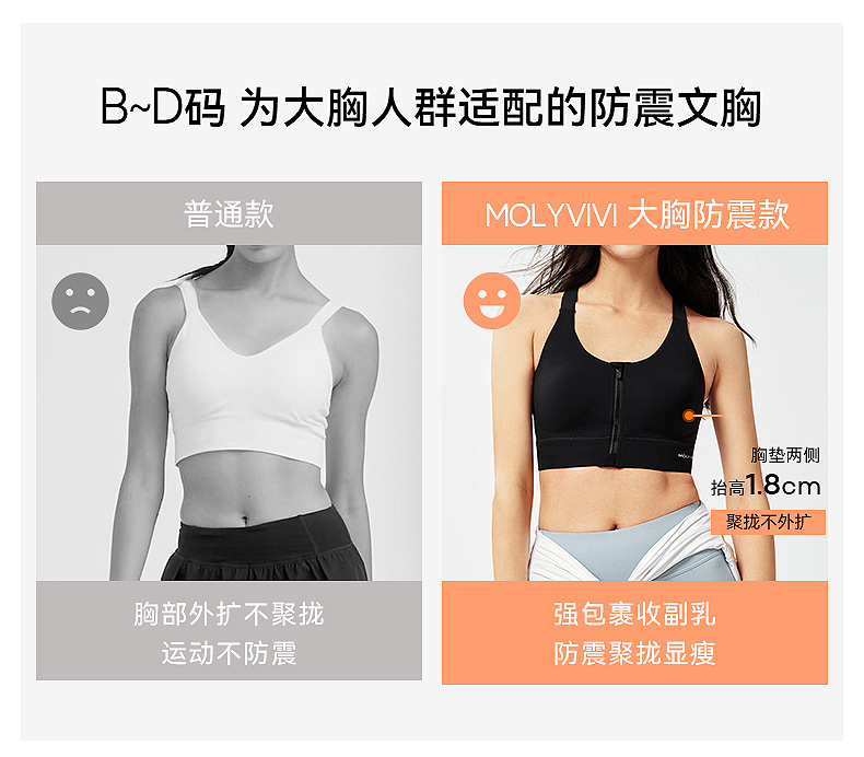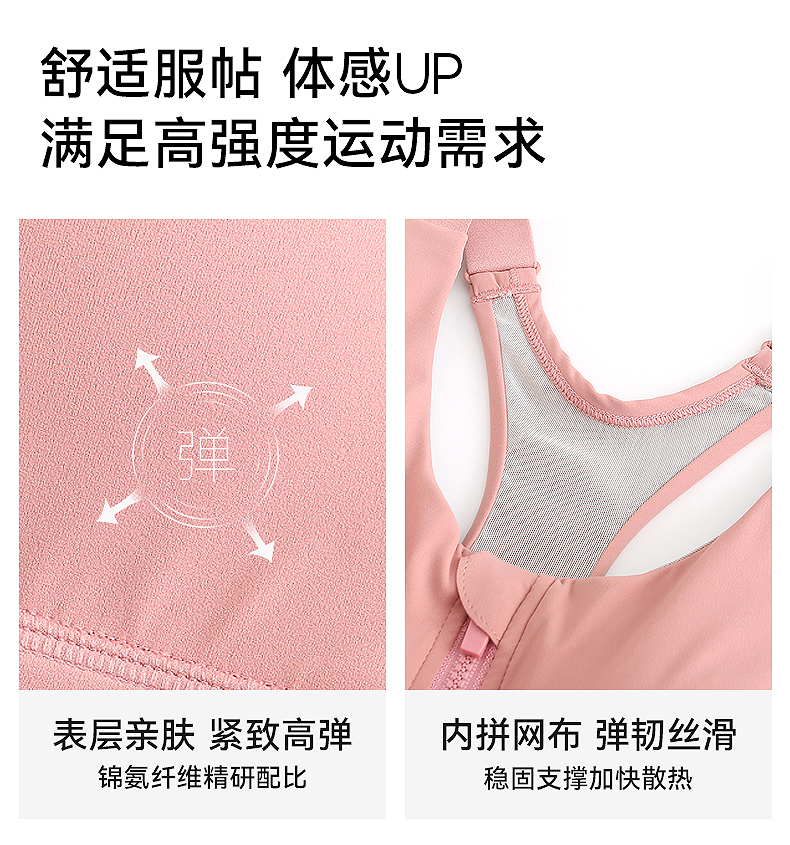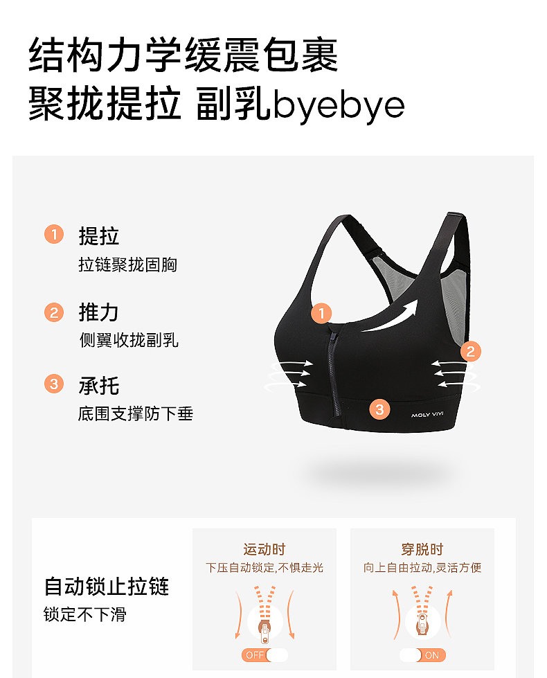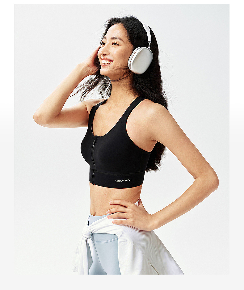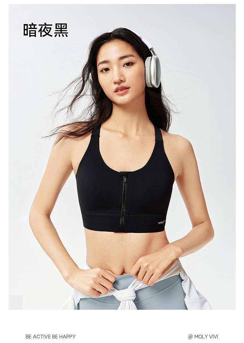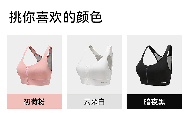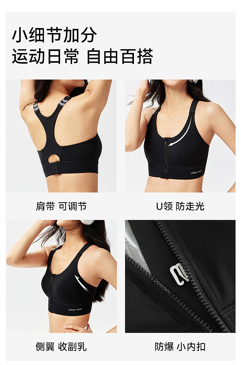 MOLYVIVI前拉链防震运动文胸 不插垫高强一体式大胸运动内衣女