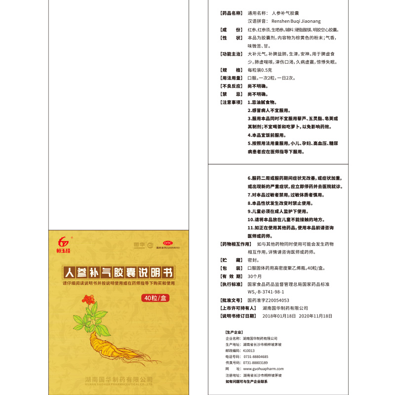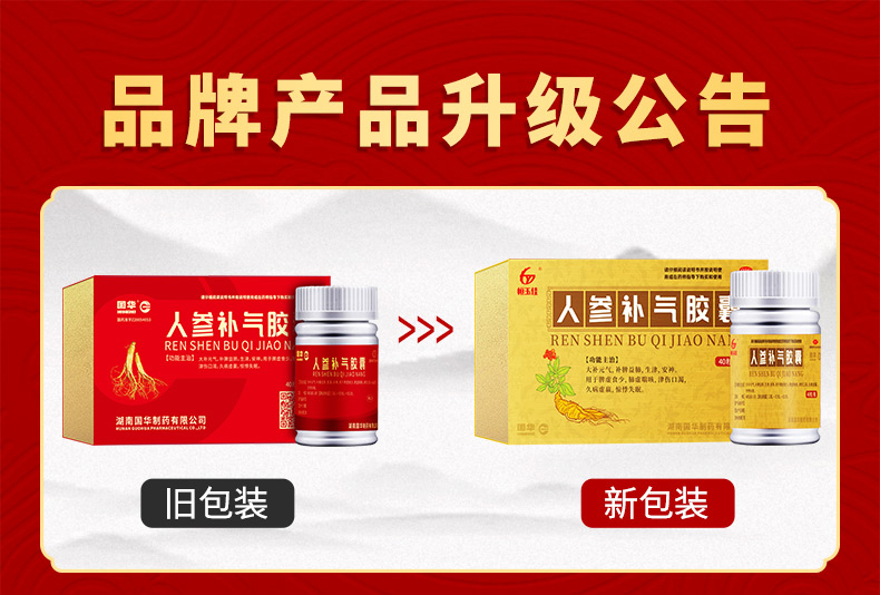 国华 人参补气胶囊 0.5g*40粒*1瓶/盒补元气补脾益肺安神体虚光榆