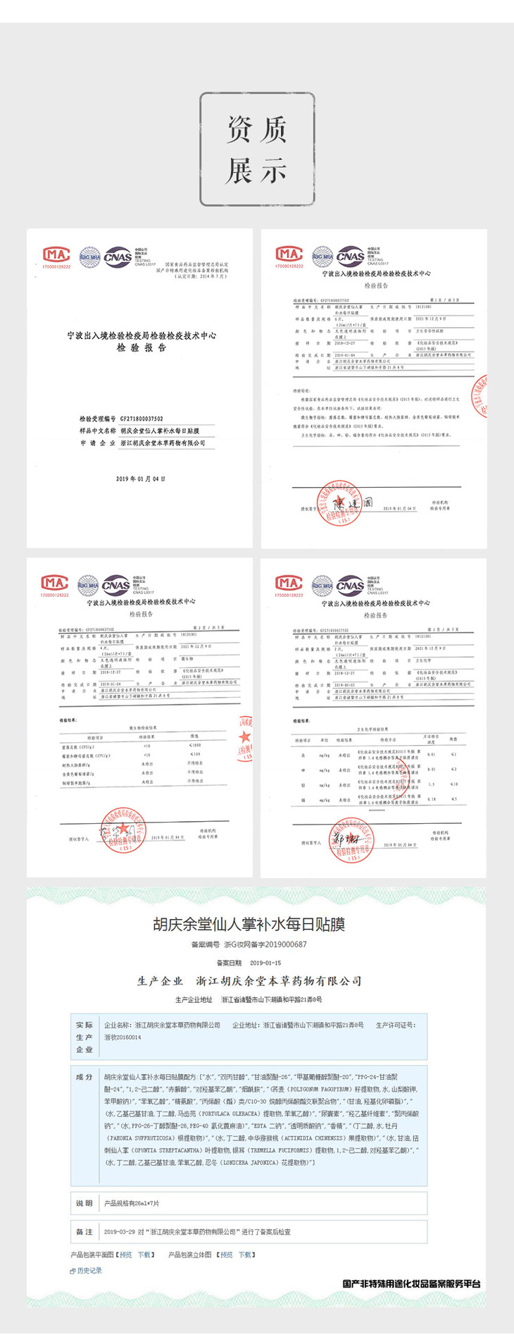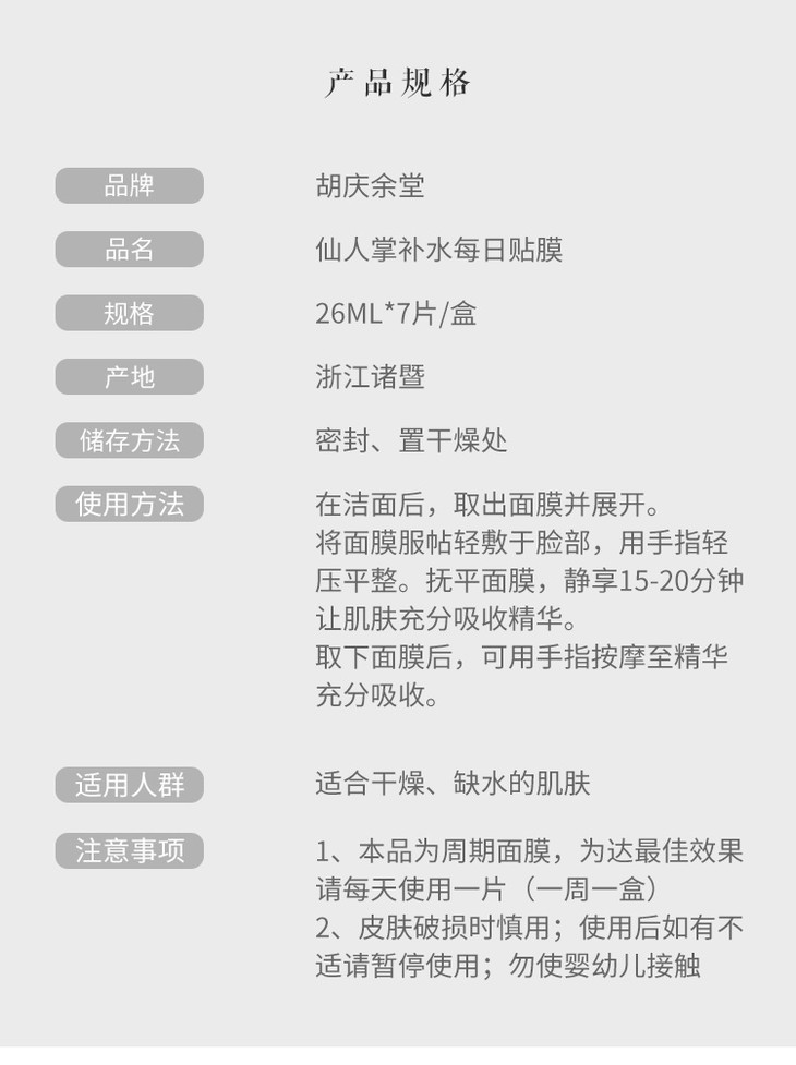 【胡庆余堂】仙人掌面膜
