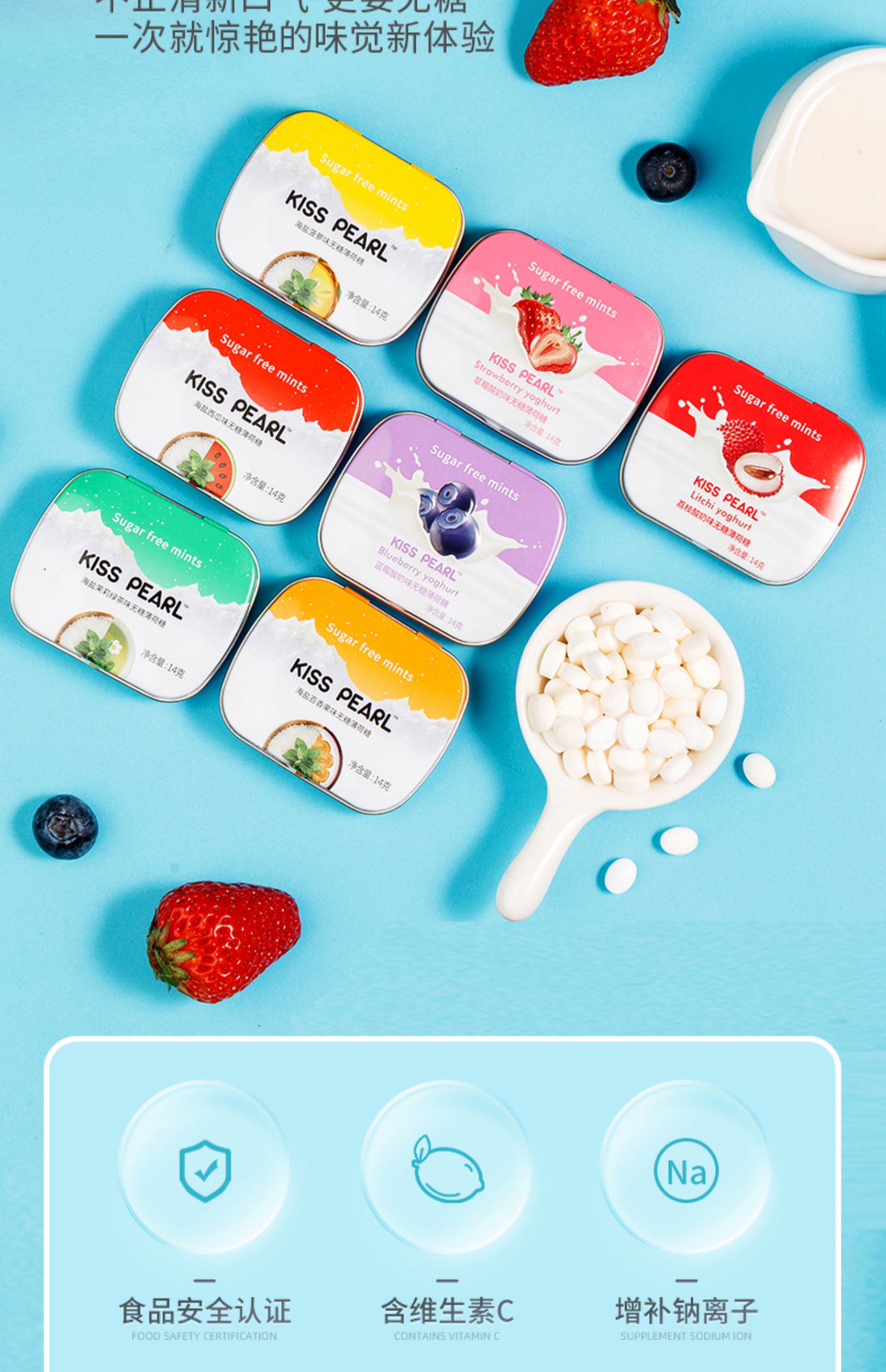 kisspearl蓝莓酸奶味薄荷糖无糖型铁盒香体糖果14g/盒