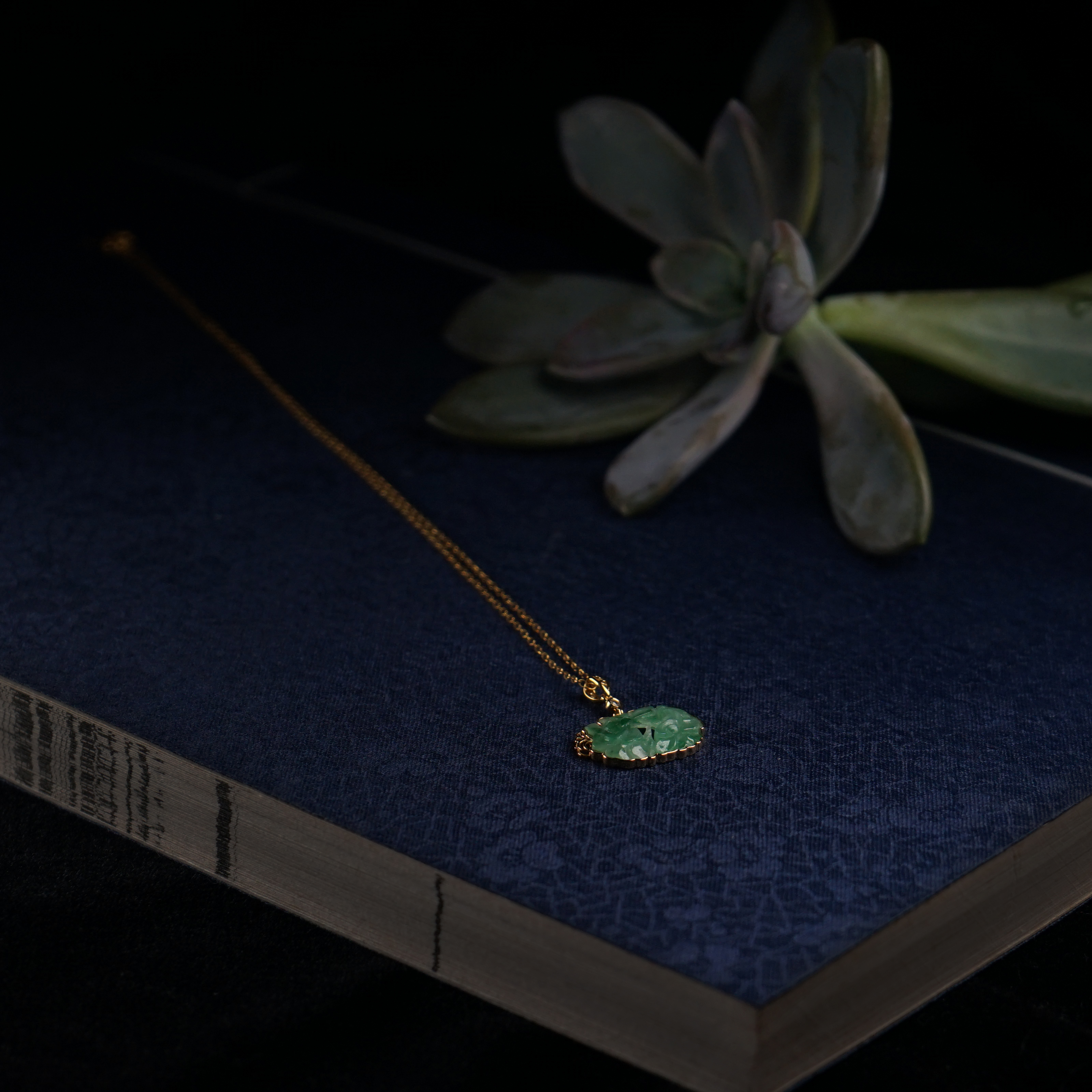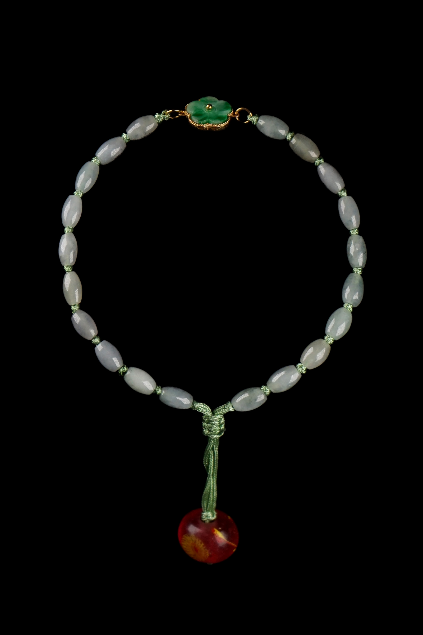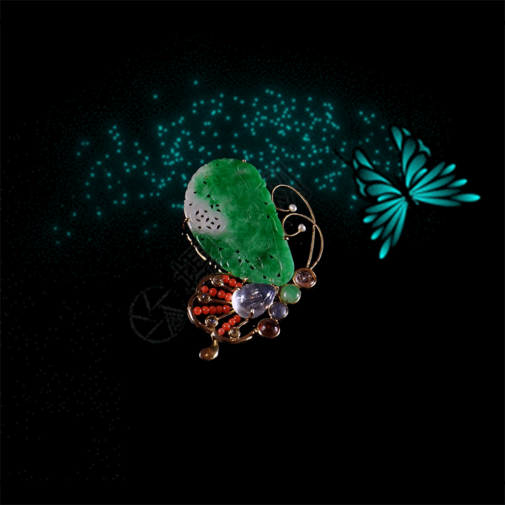 这款清代翡翠蝴蝶项饰,色泽翠绿,身姿秀美,恋花的蝴蝶常被用于寓意甜美的爱情和美满的婚姻,自古以来备受大家的喜爱,被称为“会飞的花朵”。