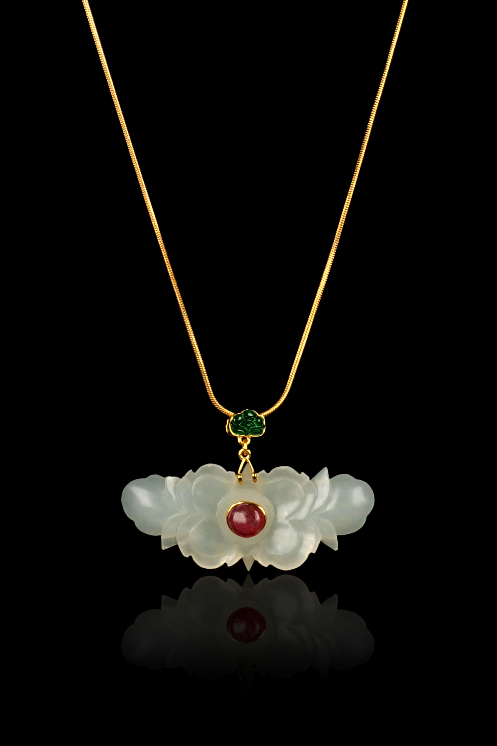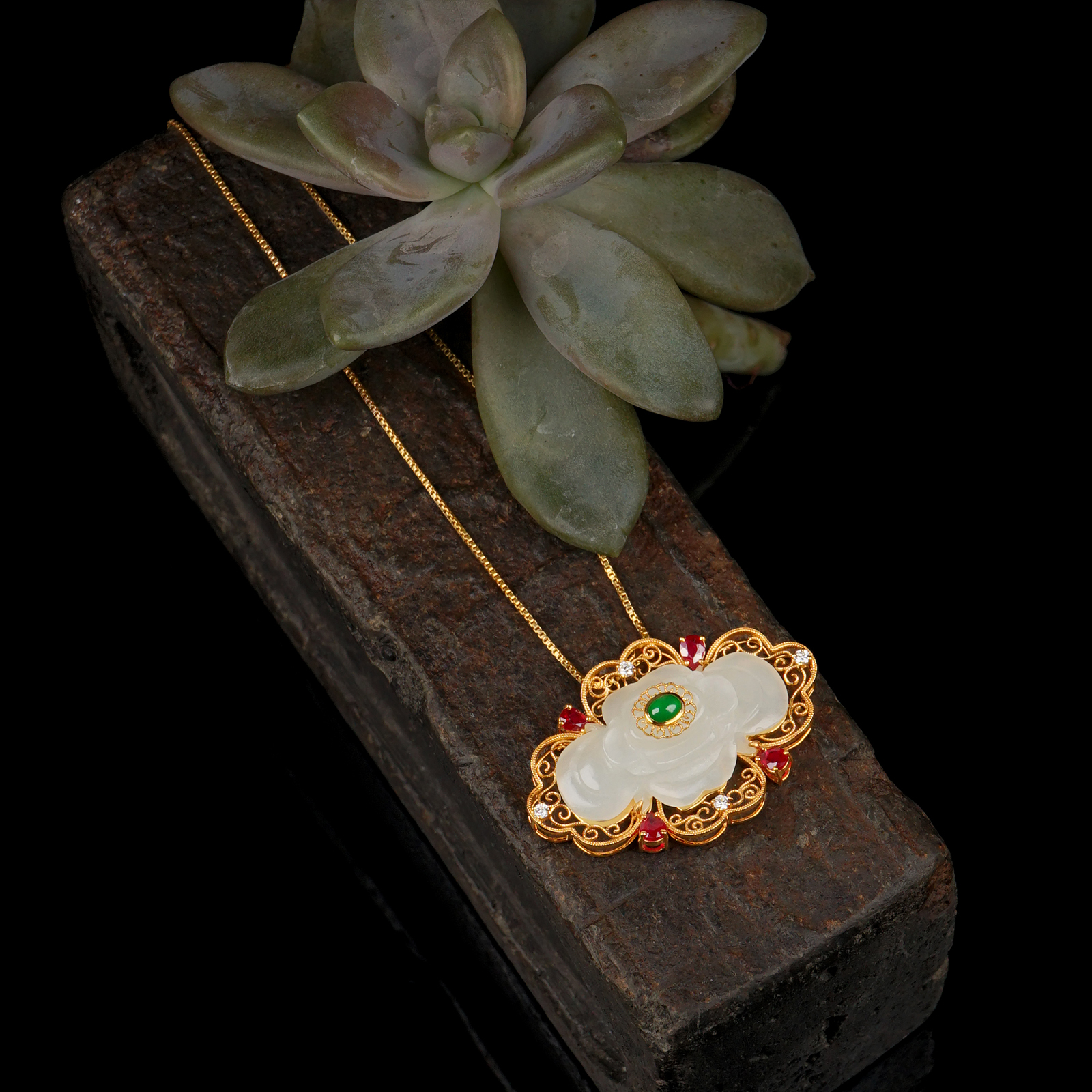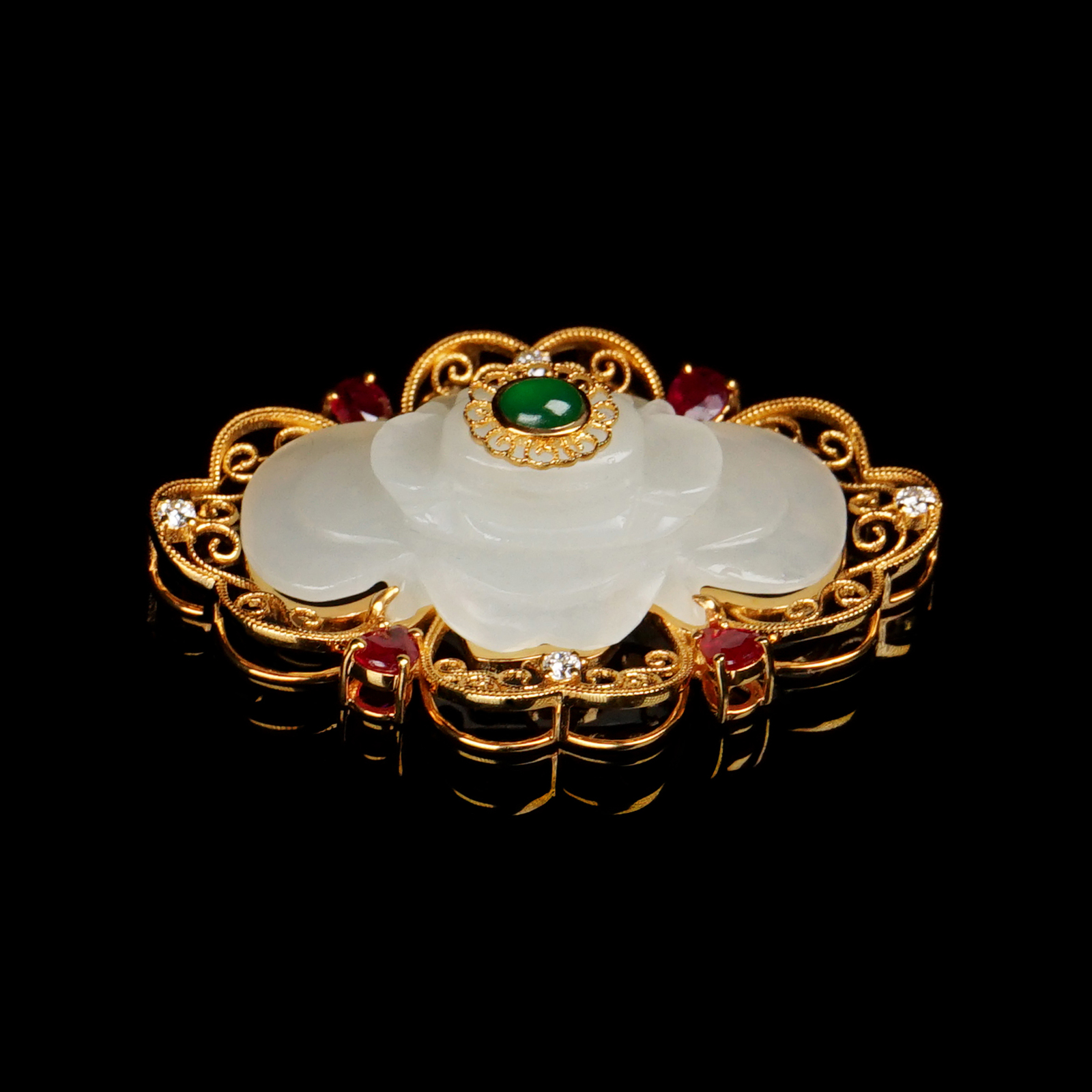 【材质】和田白玉 翡翠 红宝 钻石 18K金