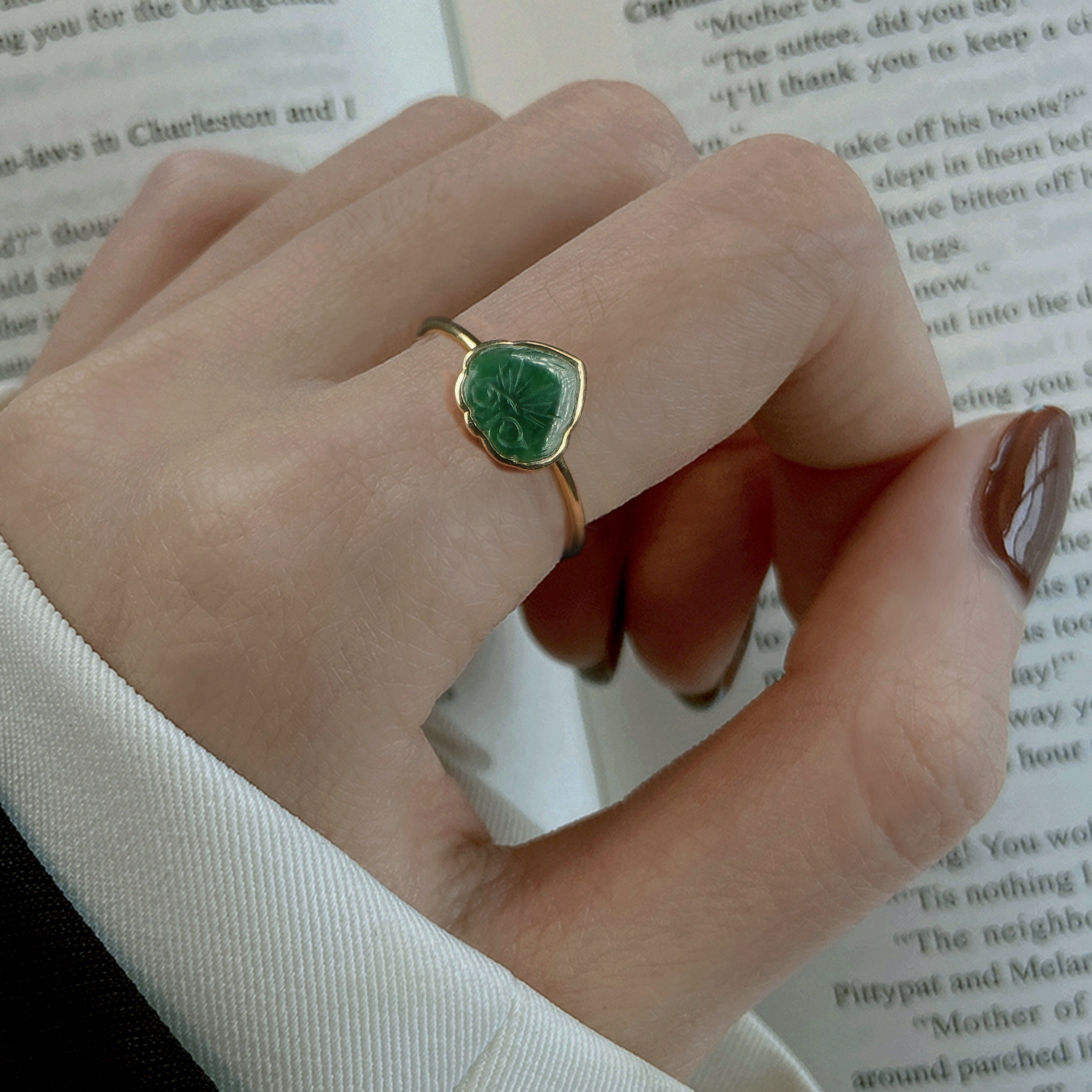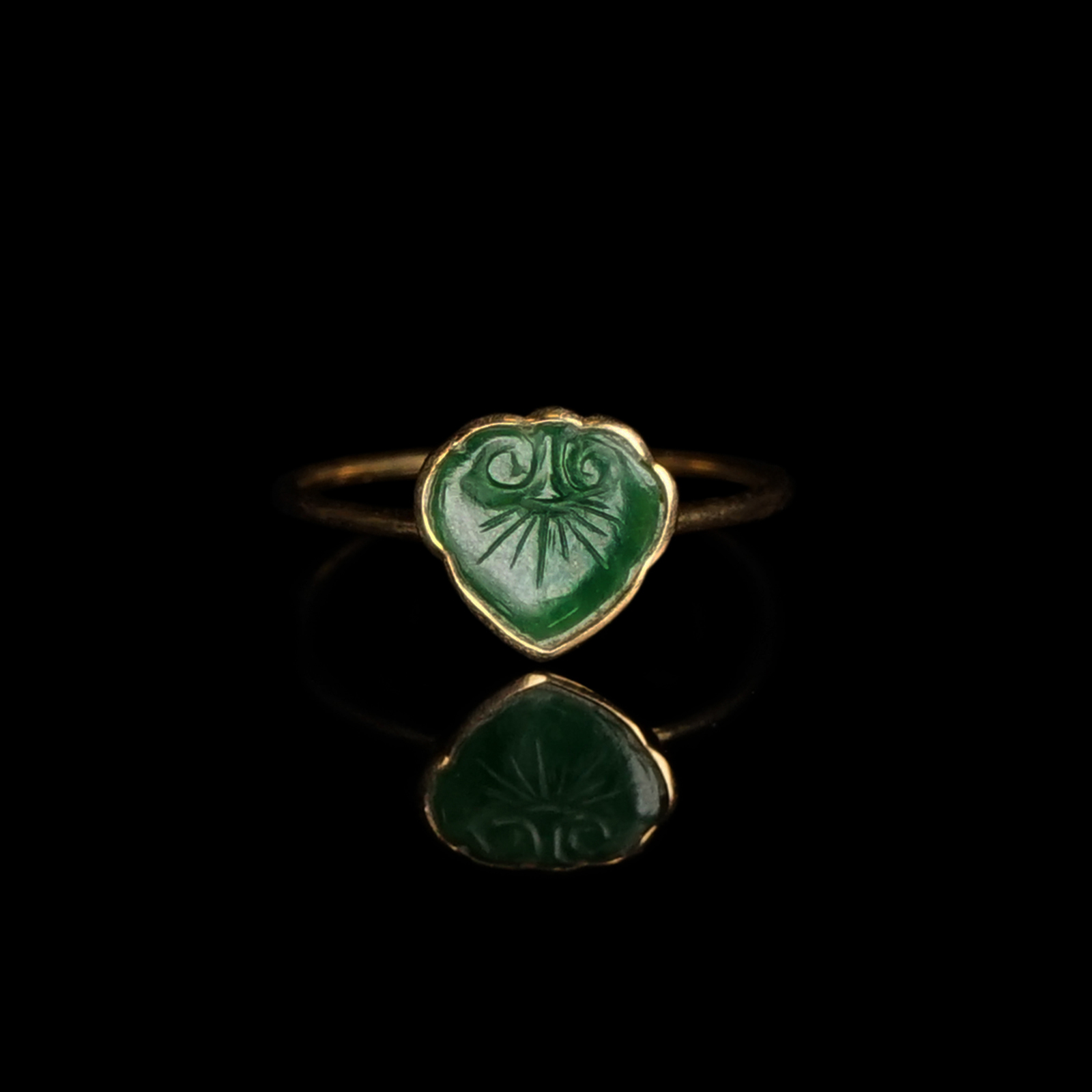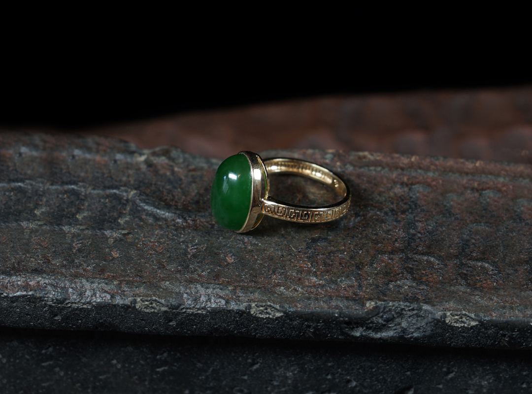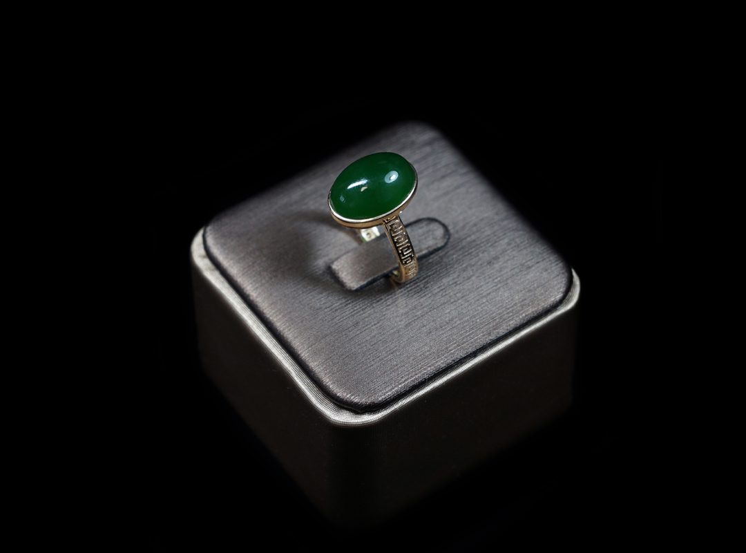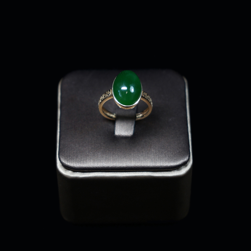 一款小巧别致的清代满绿翡翠如意镶嵌成的戒指。非常适合日常佩戴,纤巧秀丽,既有上佳的装饰效果,又有着美好的寓意。