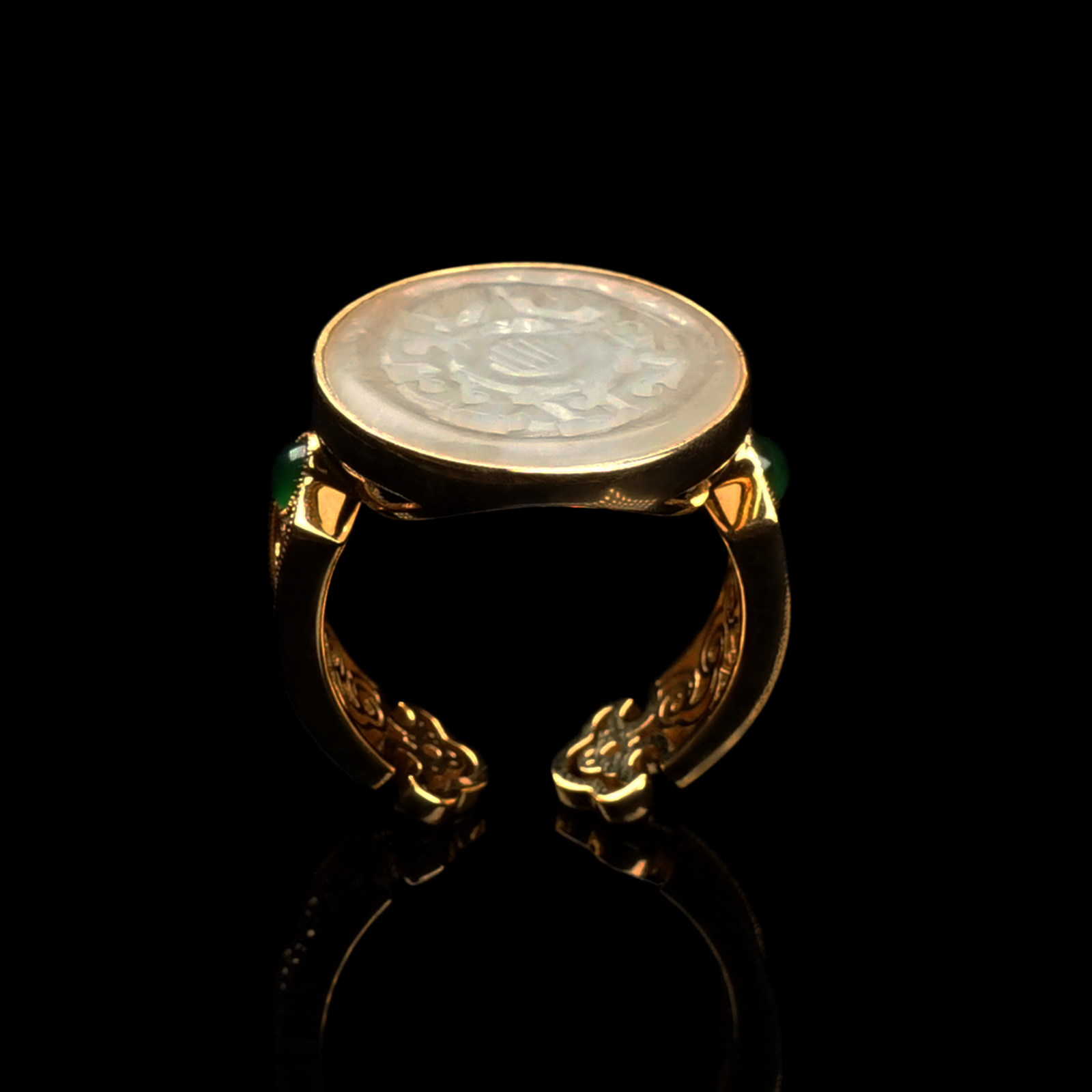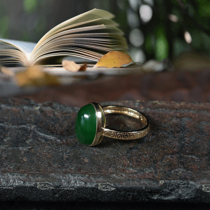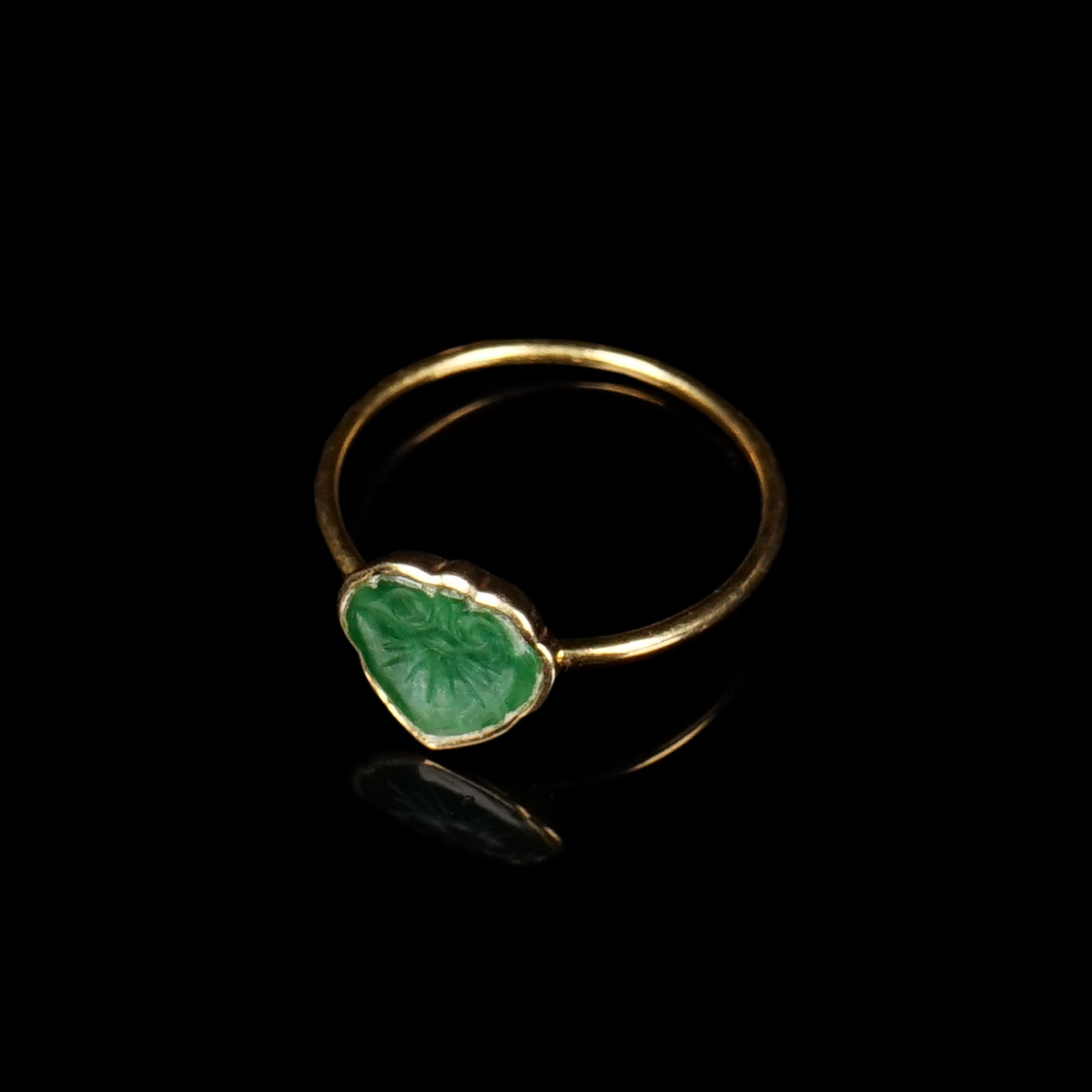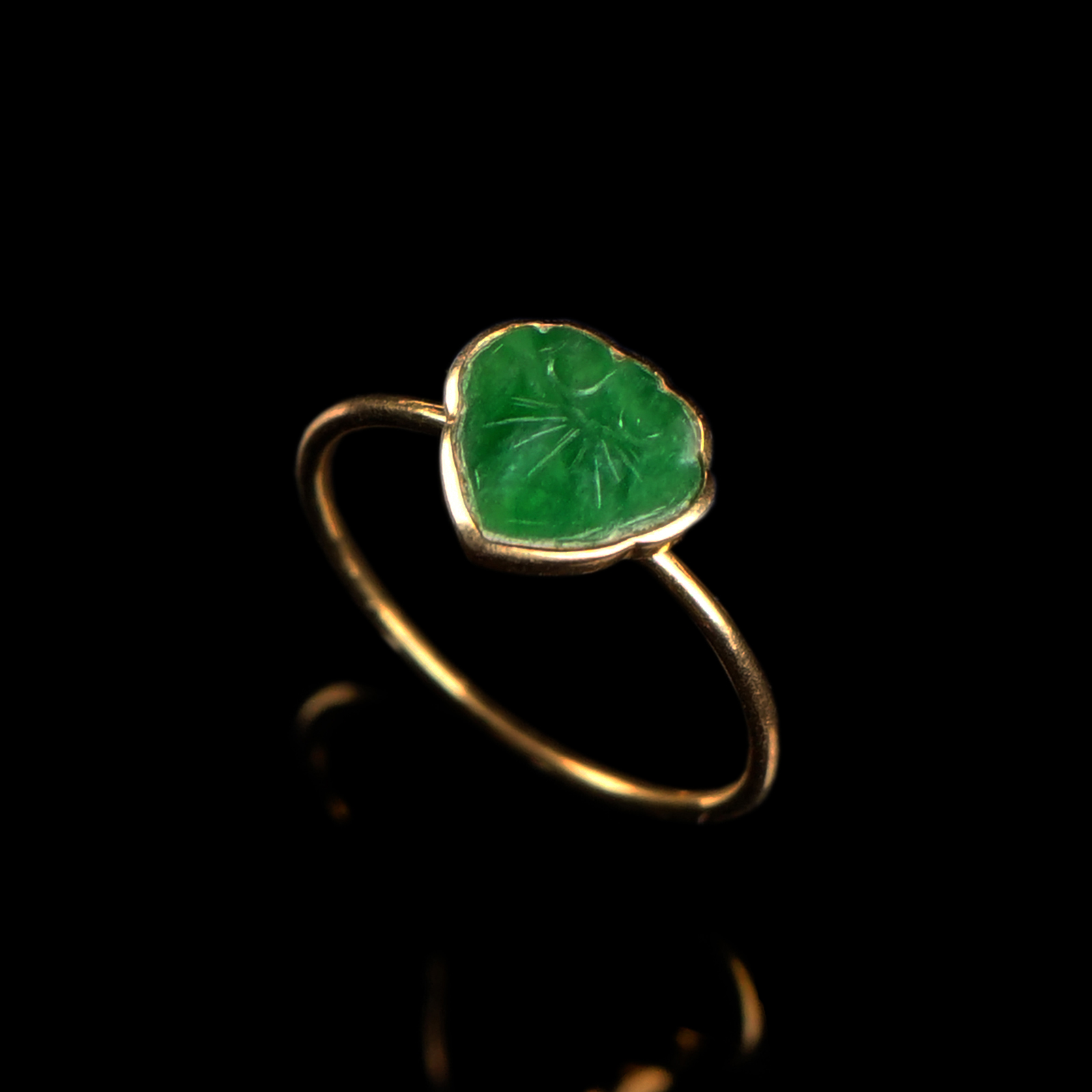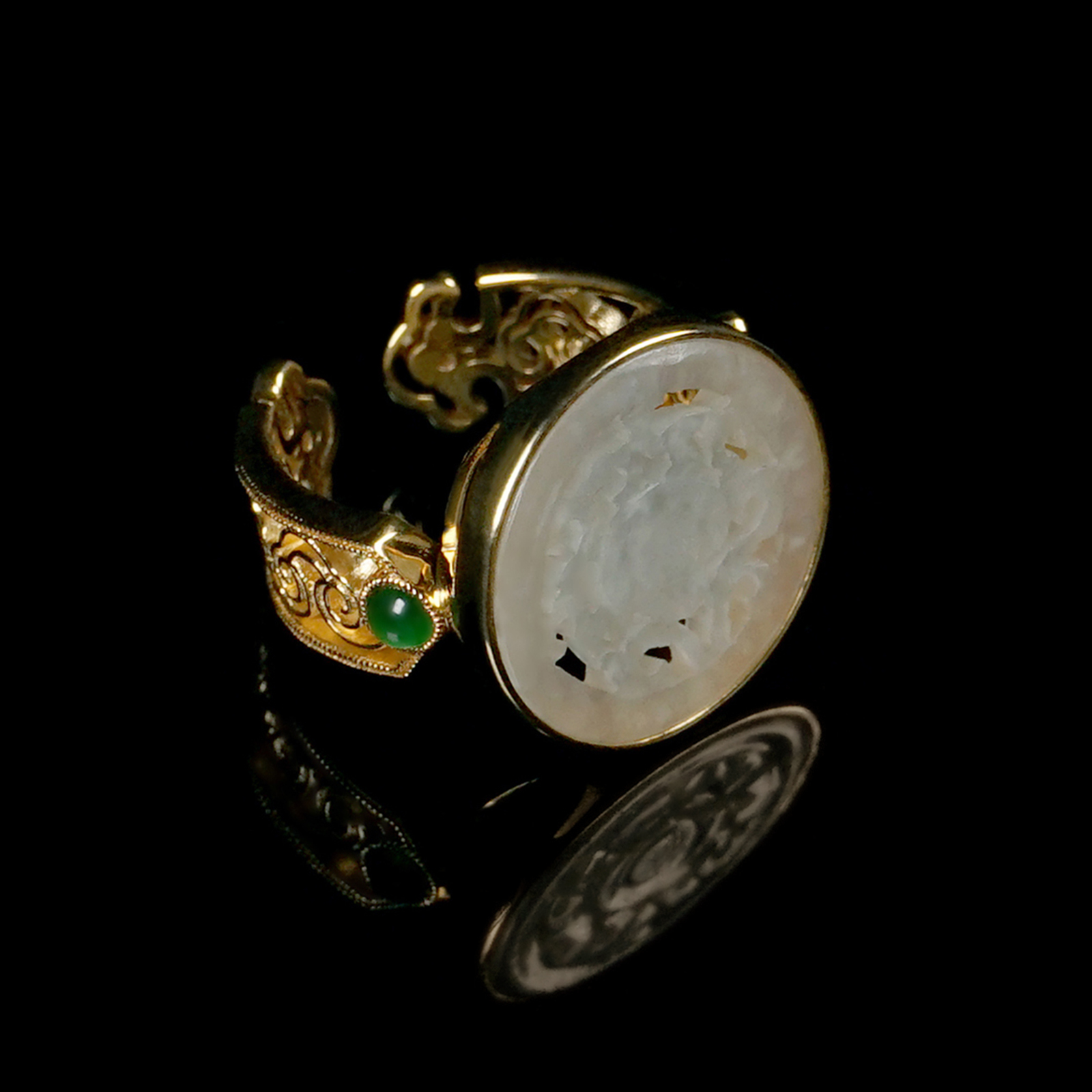 一款小巧别致的清代满绿翡翠如意镶嵌成的戒指。非常适合日常佩戴,纤巧秀丽,既有上佳的装饰效果,又有着美好的寓意。