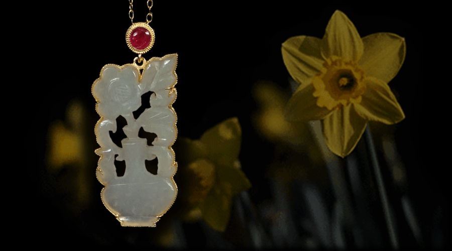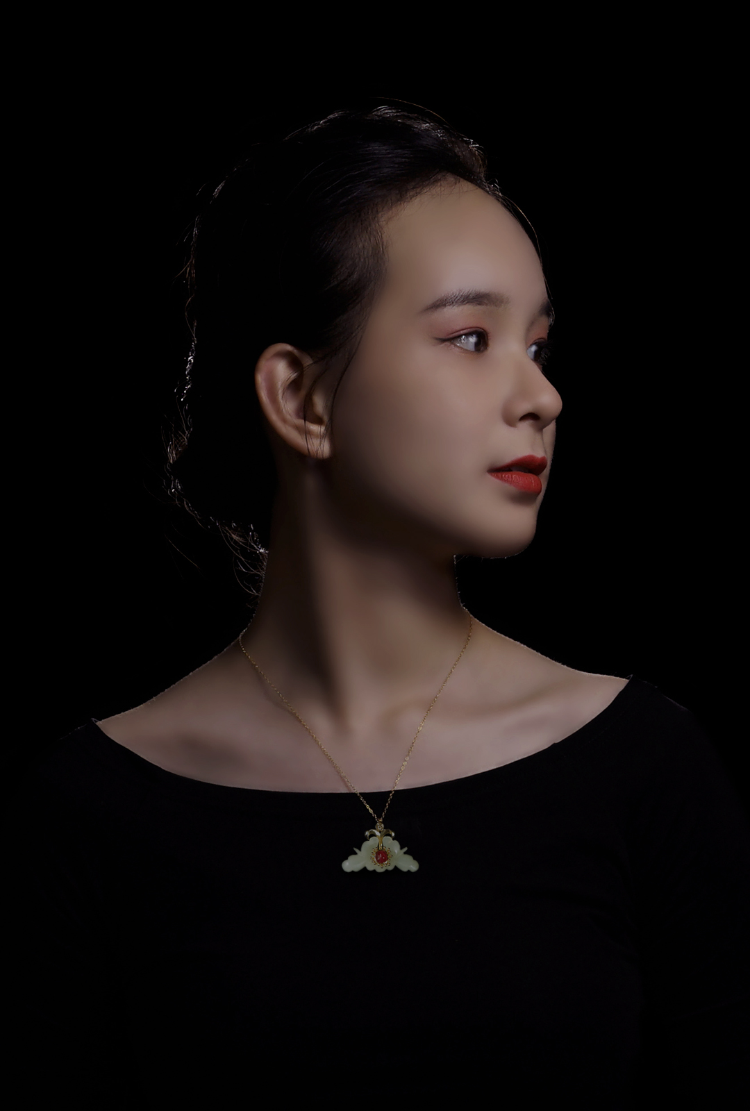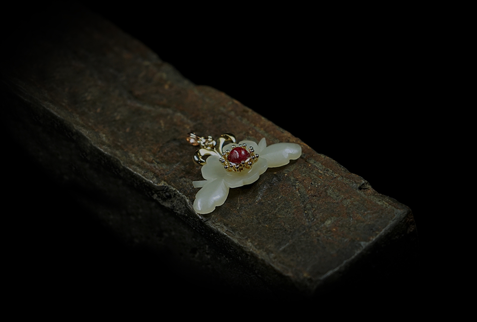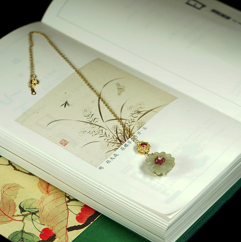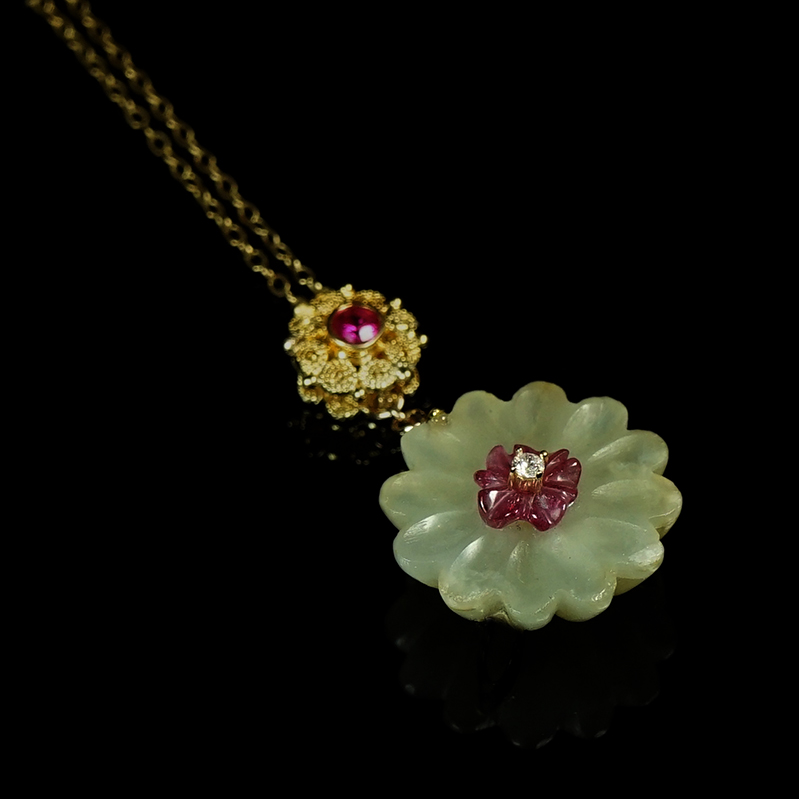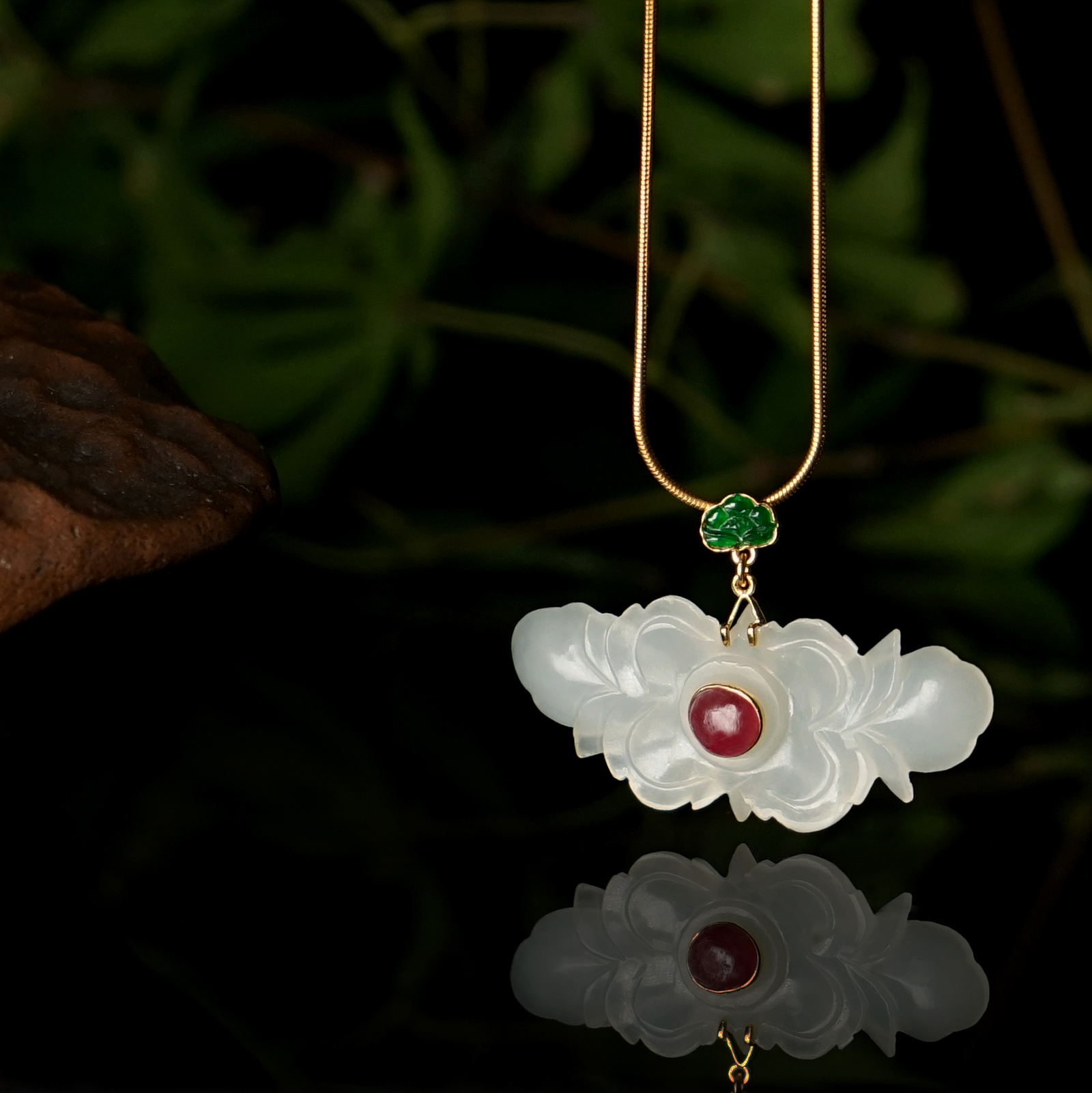 【材质】和田白玉 钻石 红宝 碧玺 18K金
