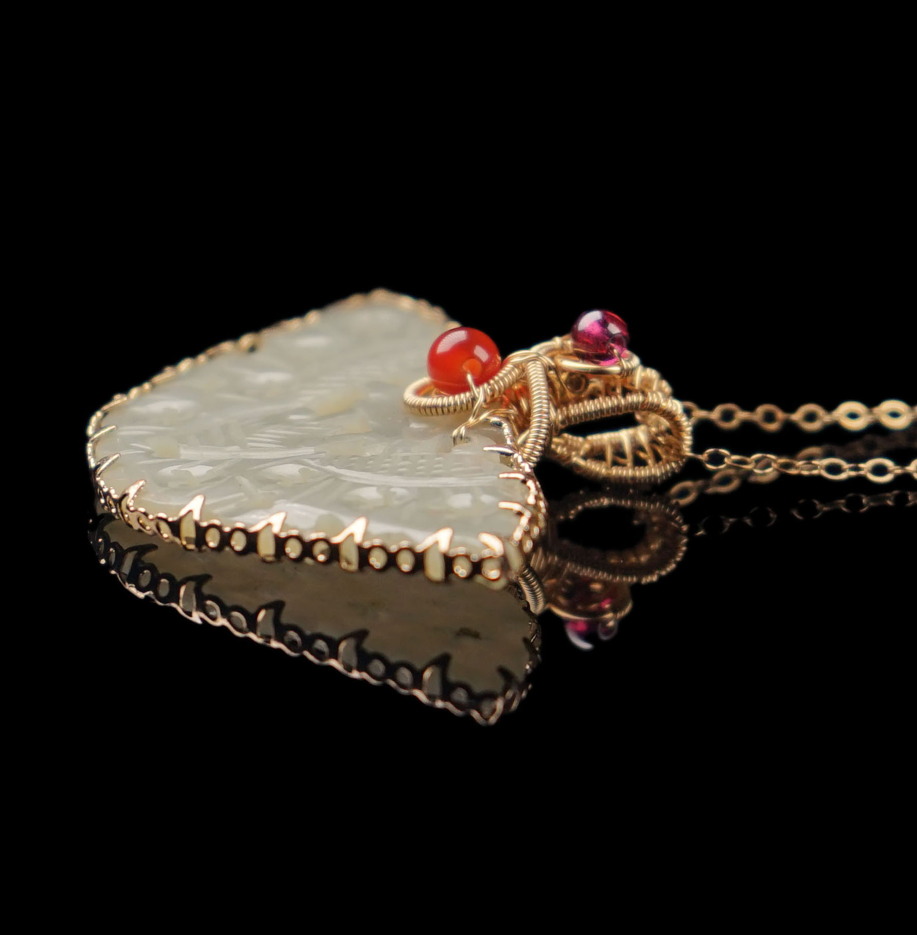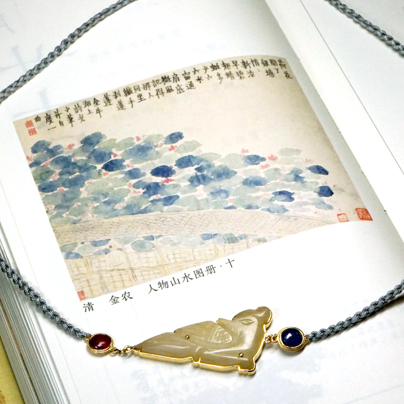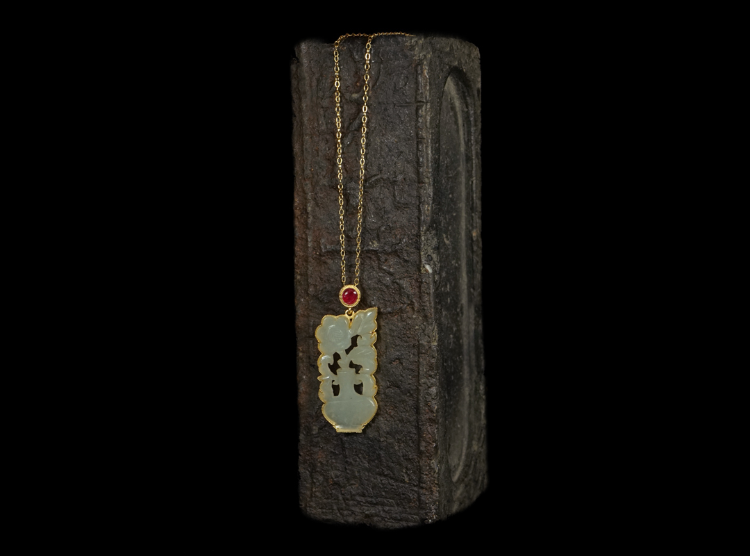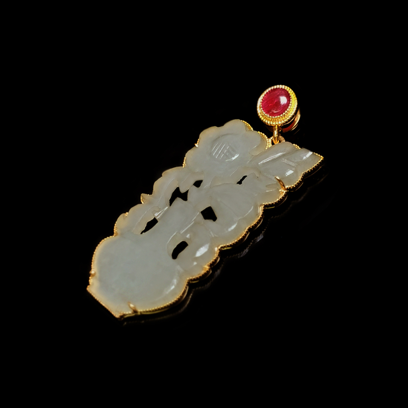 【材质】和田白玉 老红宝 老蓝宝 18K金
