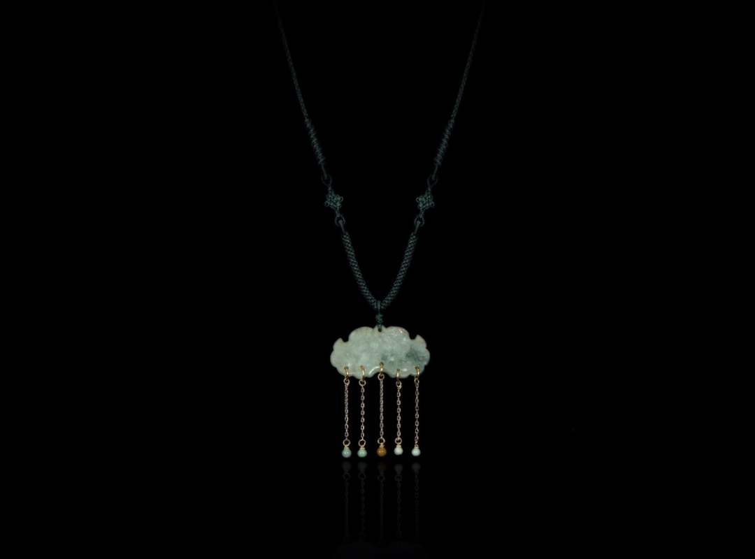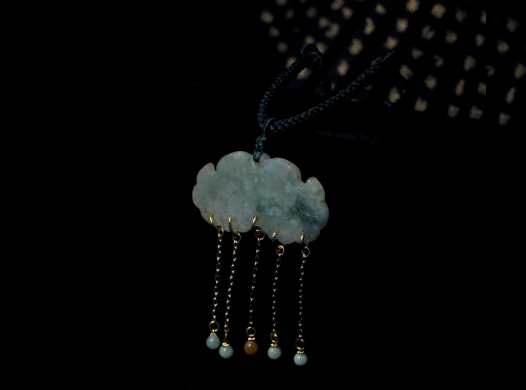 一款冰冰的飘蓝花清代翡翠荷叶项饰,老翡翠能有这样的种水,比较难得。清幽的飘蓝花,沉静,雅致。古典的中国绳艺,完美的结合。