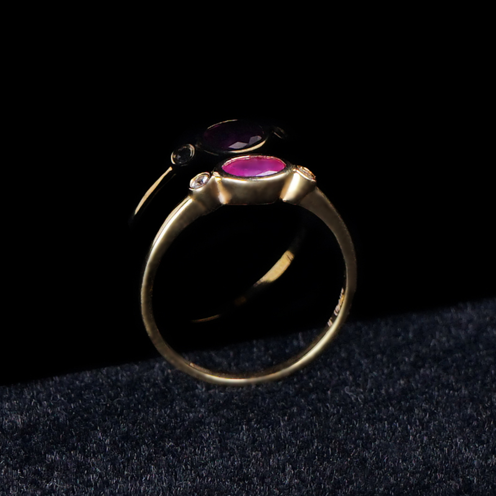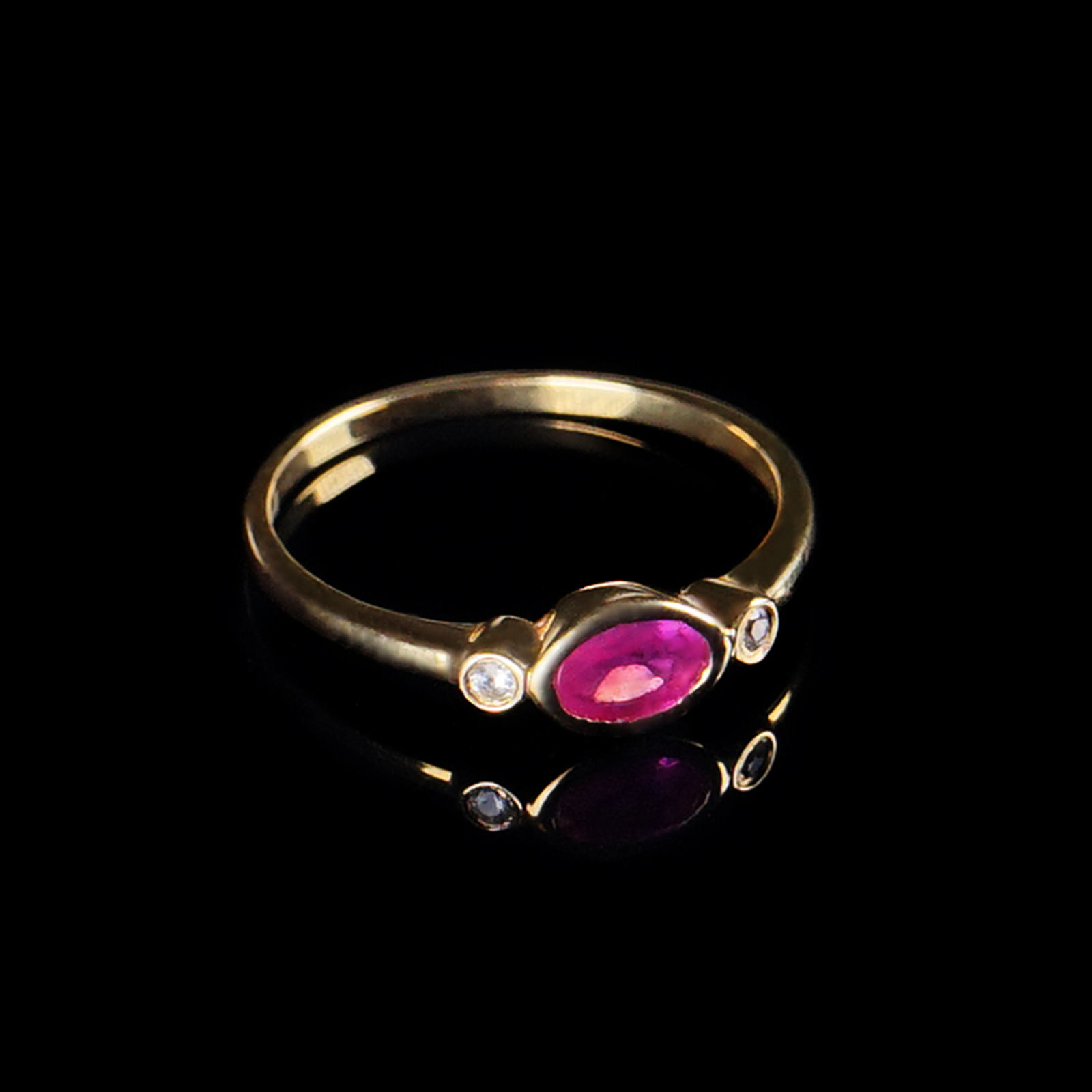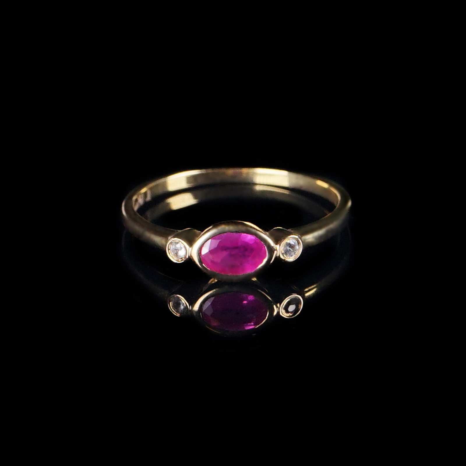 一款娇俏秀丽的小红宝戒指,配以白色蓝宝,是指间一抹亮丽的风景。