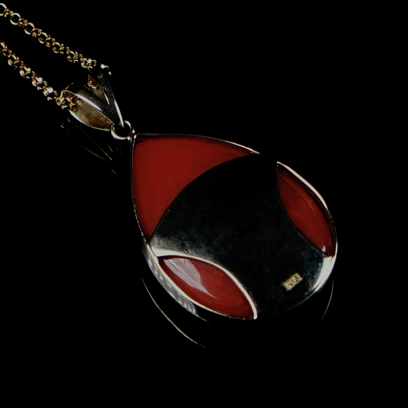 一款日本回流的18K金镶阿卡有机宝石吊坠。