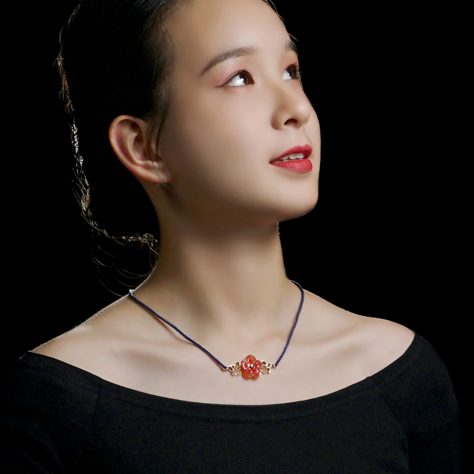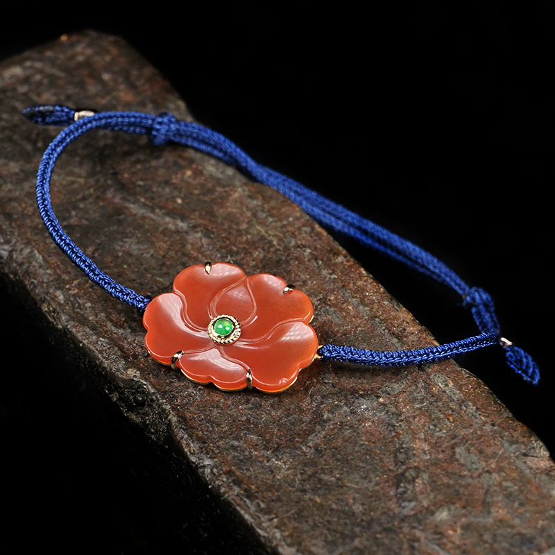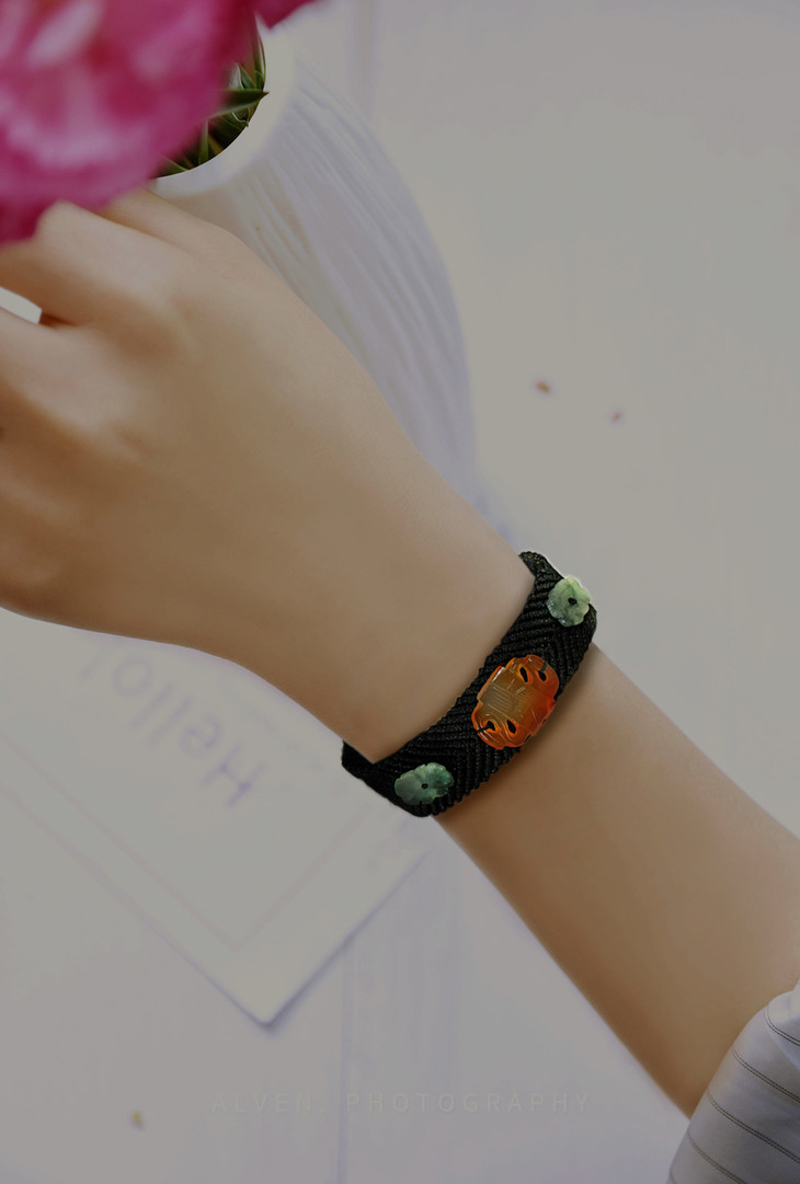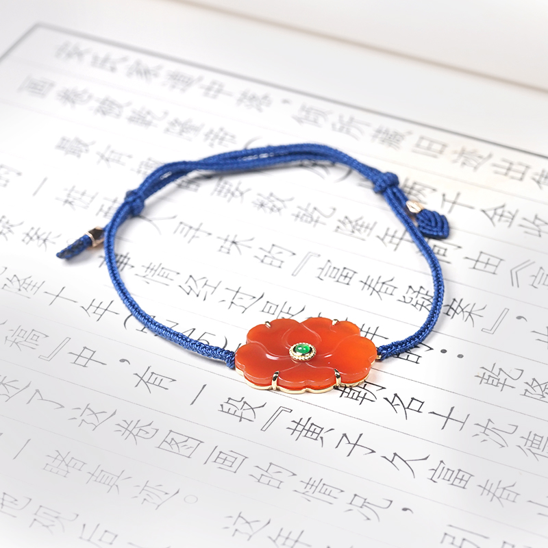 玛瑙是佛教七宝之一,红玛瑙不仅带给人喜庆的感觉,更有富贵平安的美好寓意。以典雅的中国绳艺编结,充分展示了老古董,新时尚的风格。