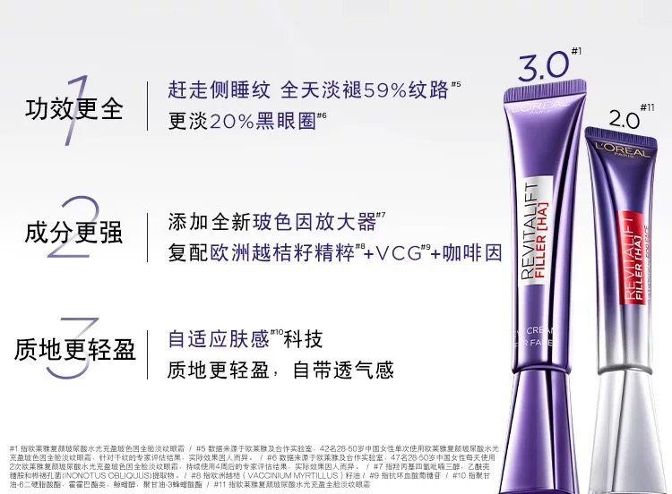 【欧莱雅黑科技】欧莱雅紫熨斗眼霜补水保湿抗皱紧致淡化细纹女30/50ml