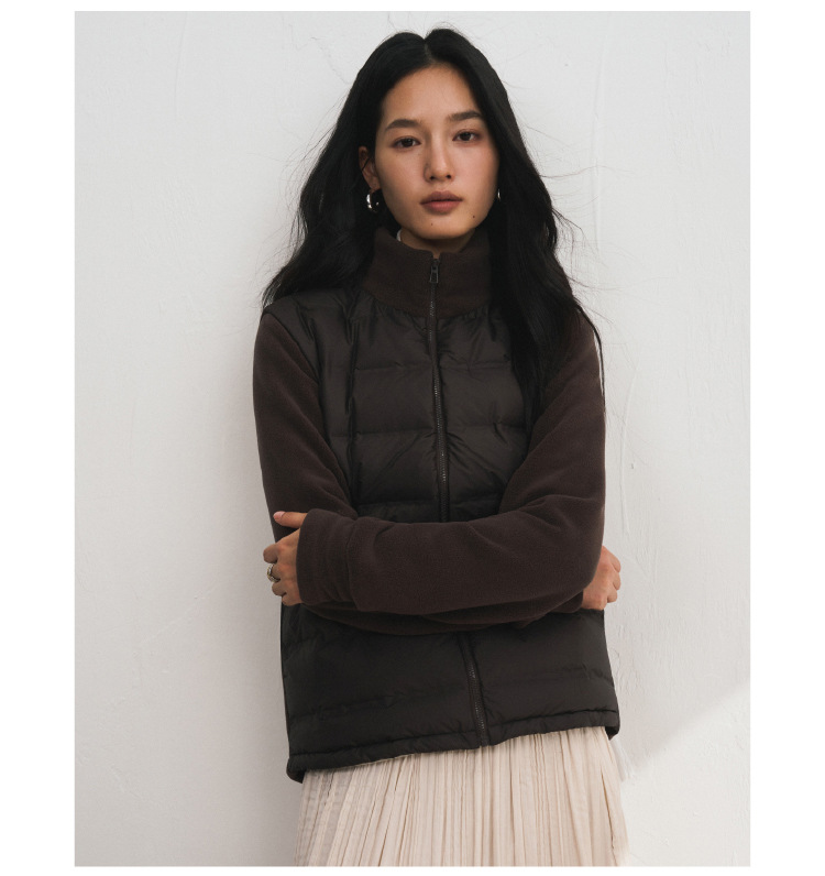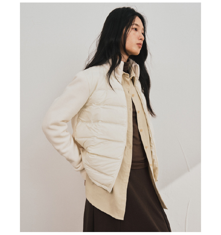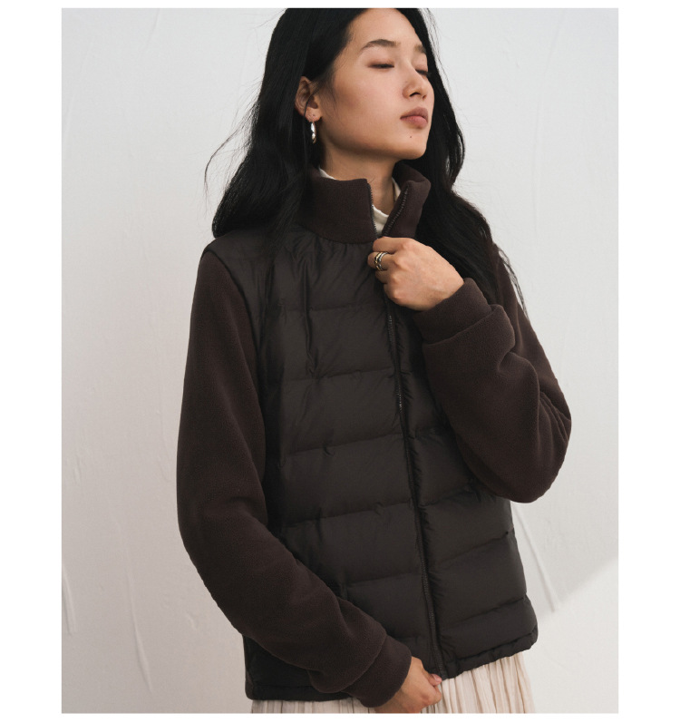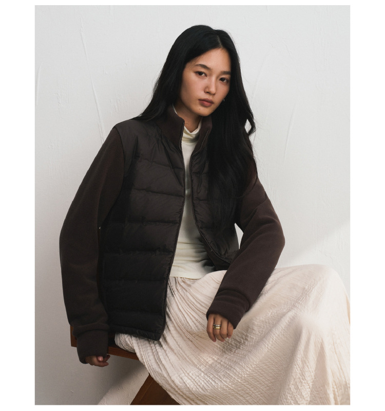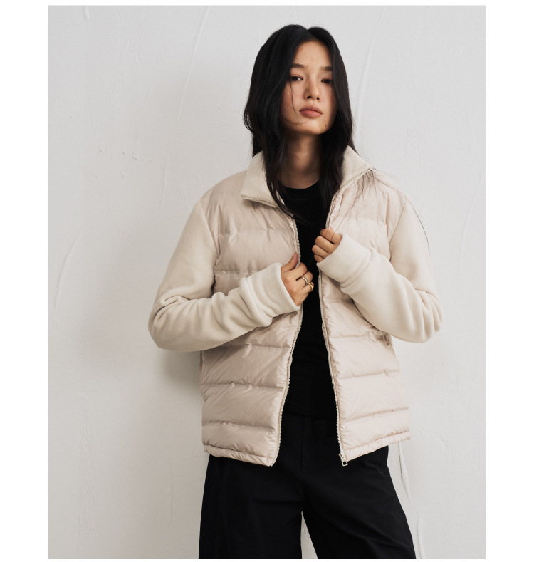 轻羽系列~摇粒绒羽绒外套女秋冬纯色匈牙利90鸭绒 拼接保暖开衫高级感百搭潮流外套短款