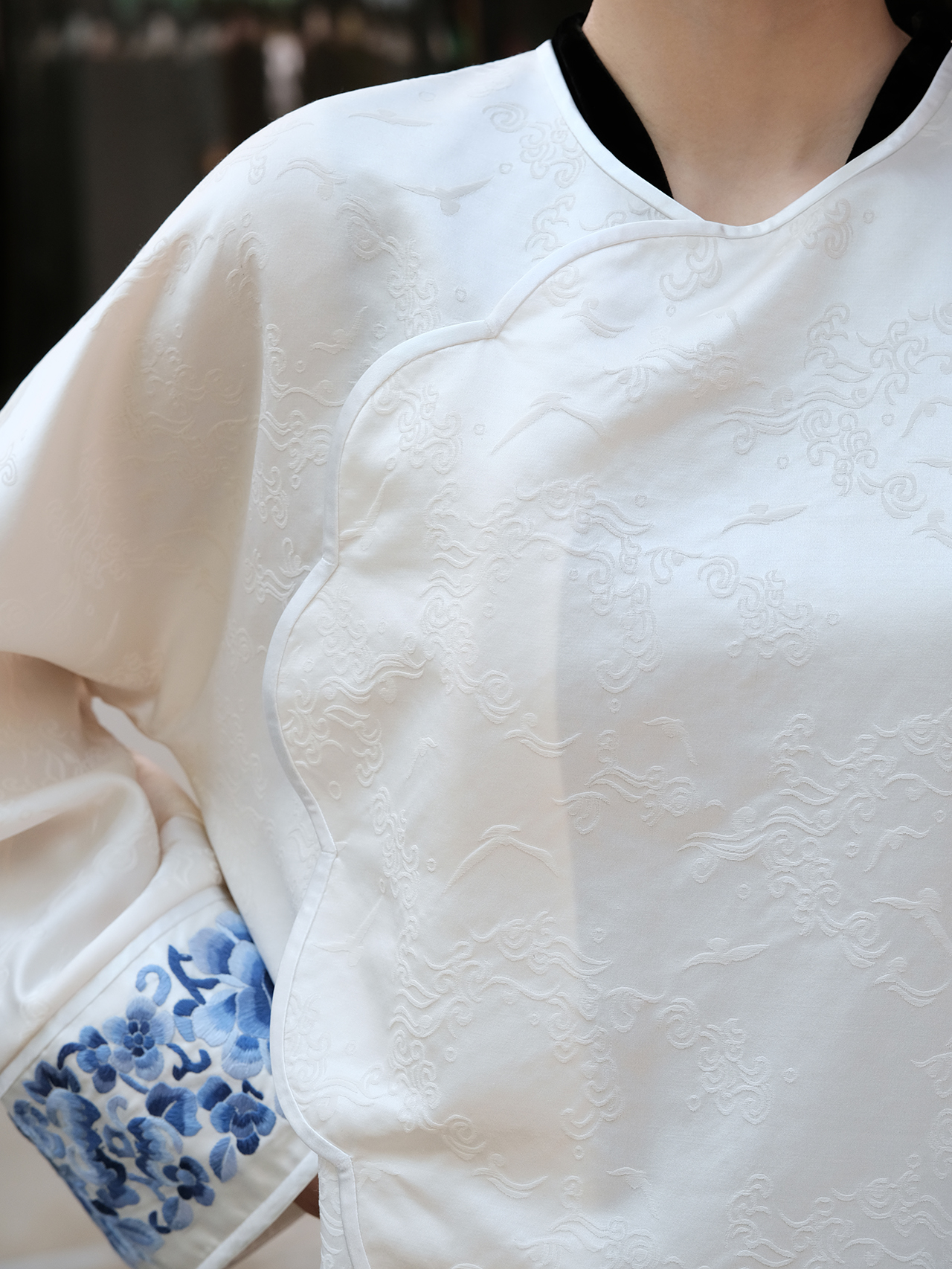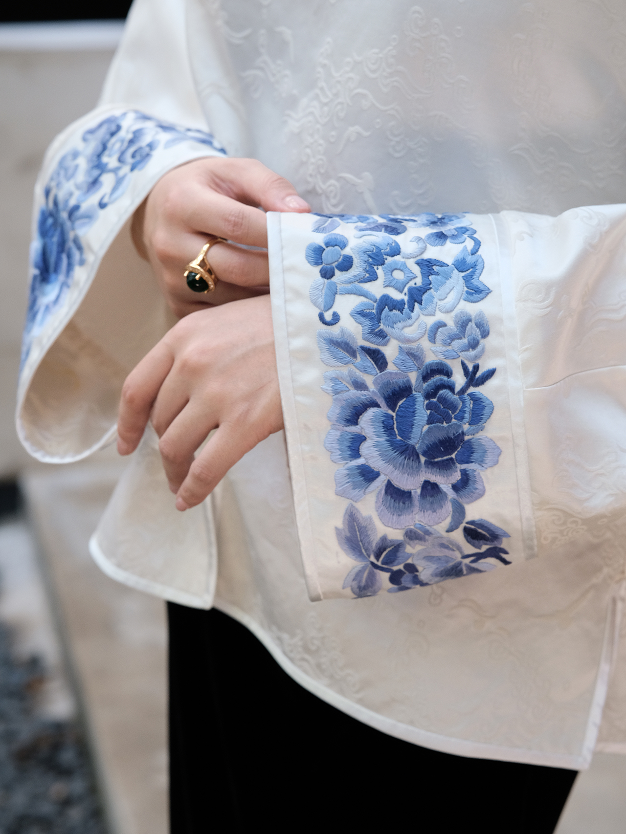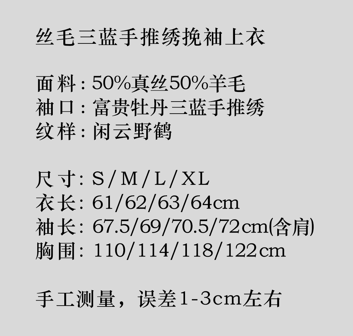 盛唐牡丹 |丝毛三蓝手推绣挽袖上衣(限量款-售完不补)