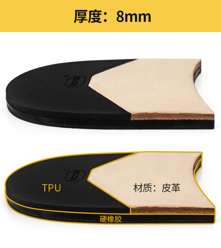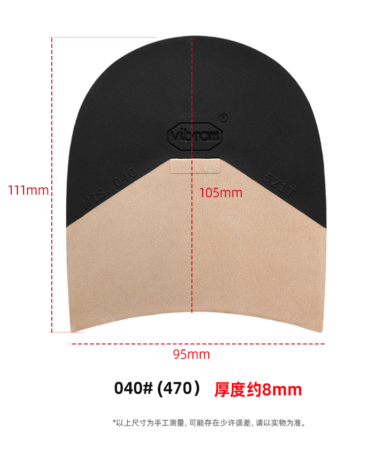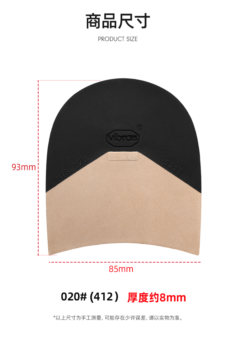 意大利进口vibram韦伯后掌镶皮革加厚后底贴皮鞋修鞋换底8mm厚521T