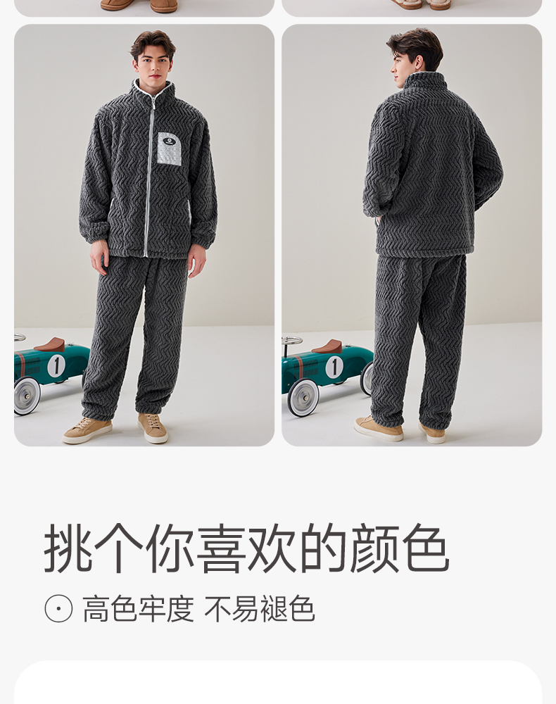 <有书独家>芬腾珊瑚绒情侣睡衣秋冬季加厚加绒套装宽松可外穿大码男女家居服
