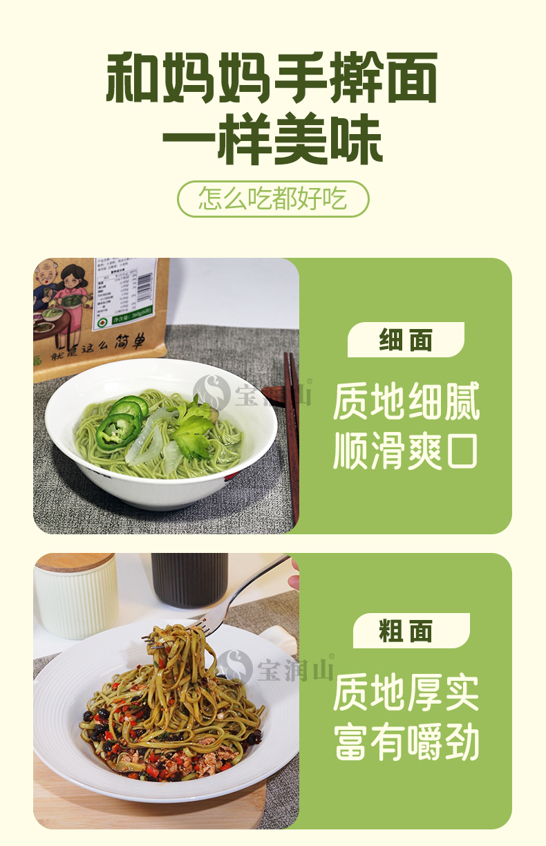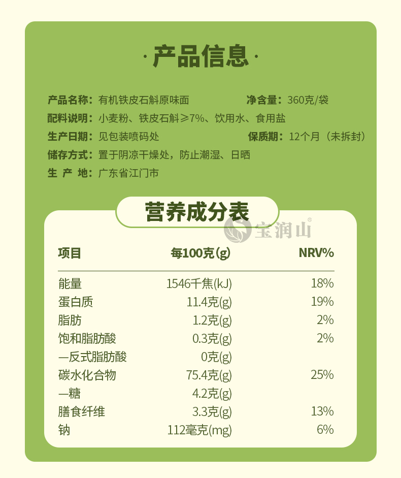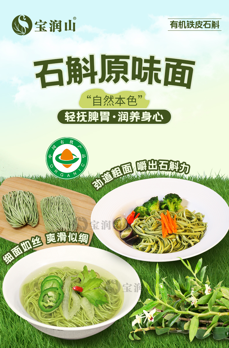 宝润山有机铁皮石斛面 石斛榨汁原味纯素粗面细面360g/袋