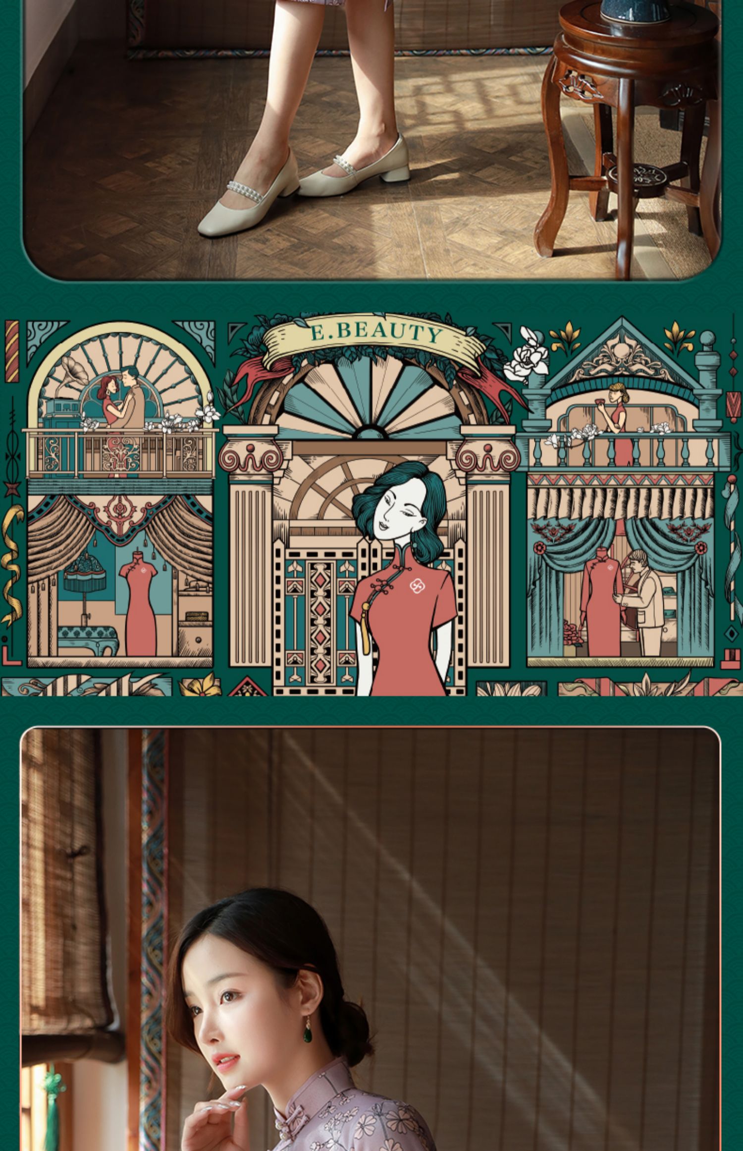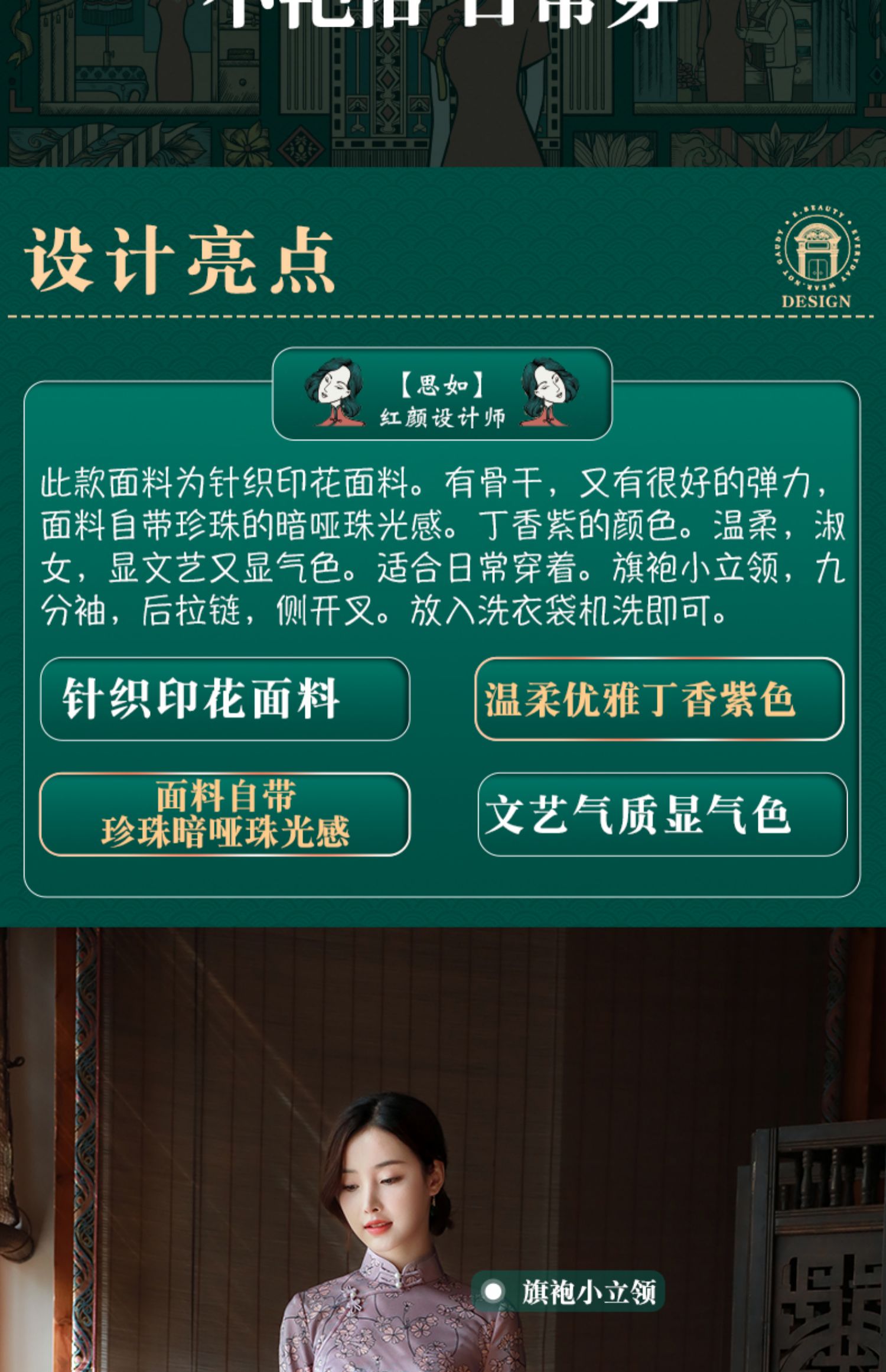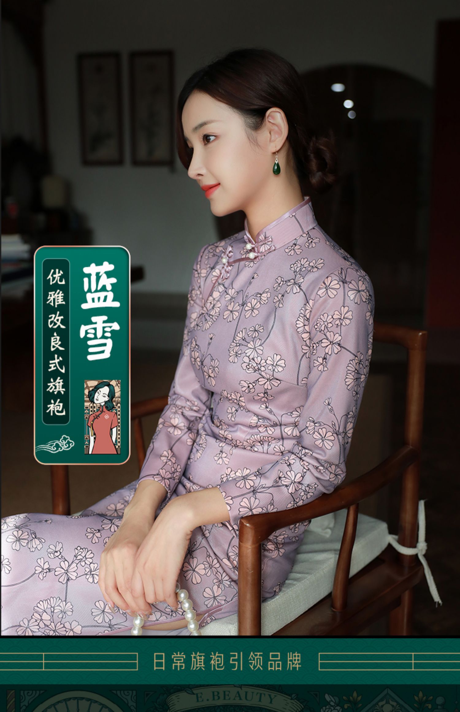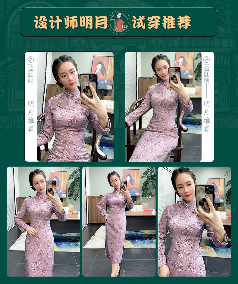 逸红颜 仓灵 2025冬新品羊毛针织呢栩栩如生双飞燕刺绣日常旗袍女