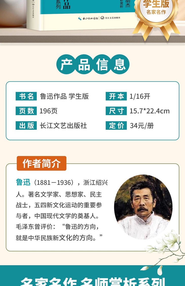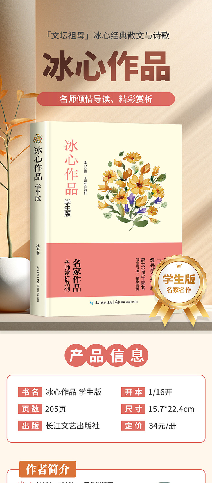 鲁迅作品+冰心作品学生版 名家作品含散文往事、寄小读者、诗歌繁星春水乡愁等经典散文与诗歌从百草园到三味书屋阿长与山海经