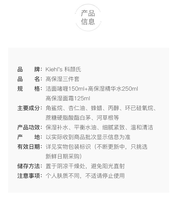 美国 科颜氏 高保湿水乳三件套套装 到27年10月