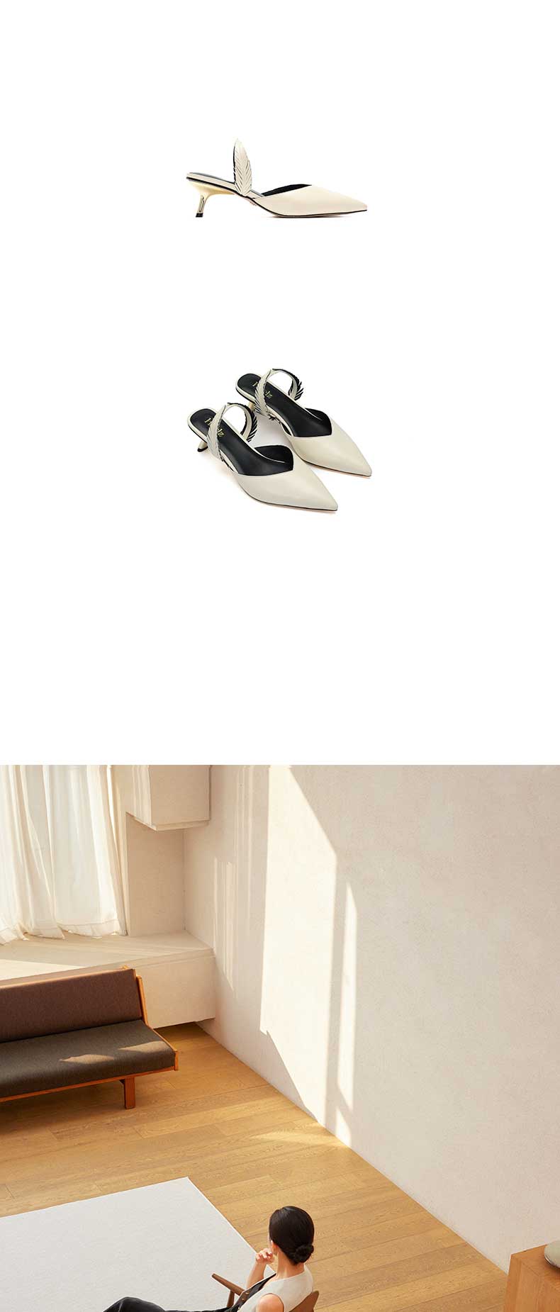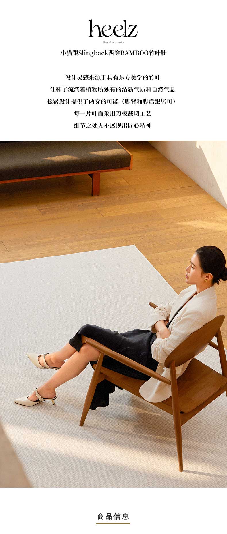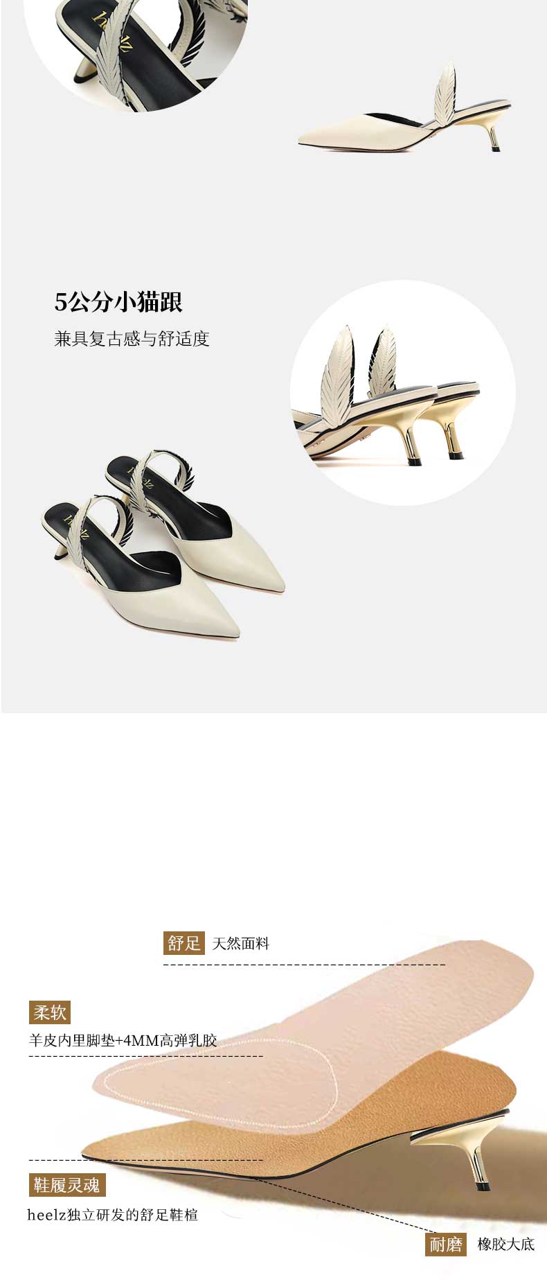 heelz设计师手工鞋履 |BAMBOO竹叶鞋小猫跟Slingback两穿50mm