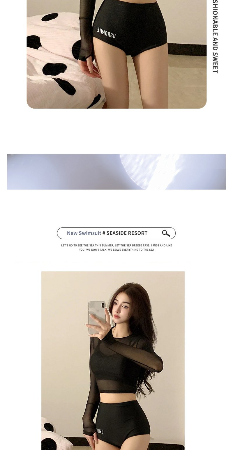 【三件套】游泳衣女保守分体性感遮肚显瘦仙女ins长袖防晒泳装