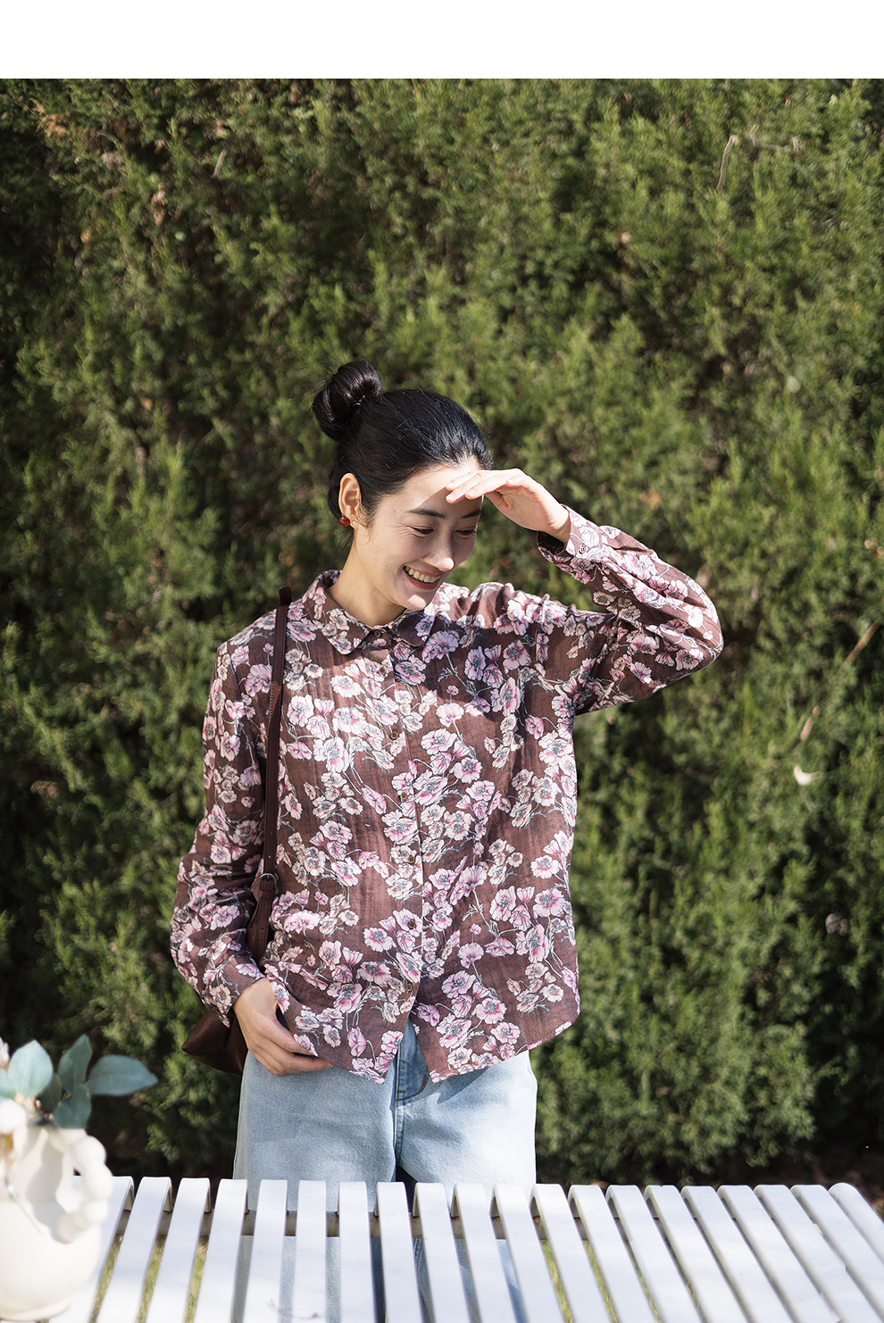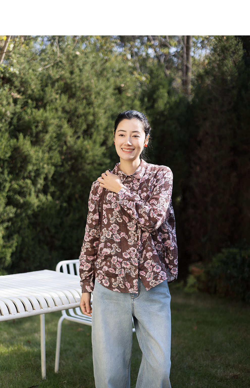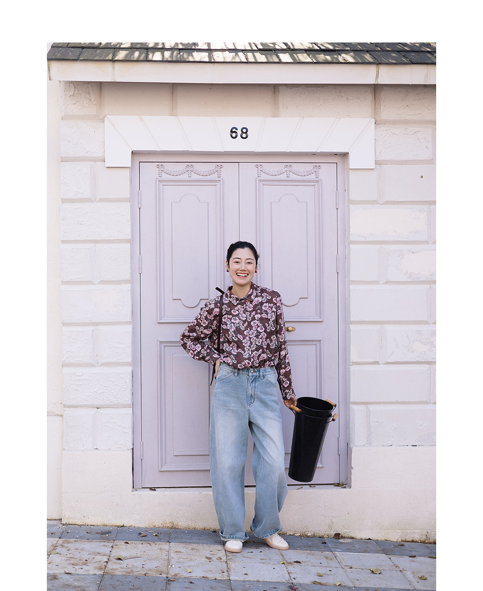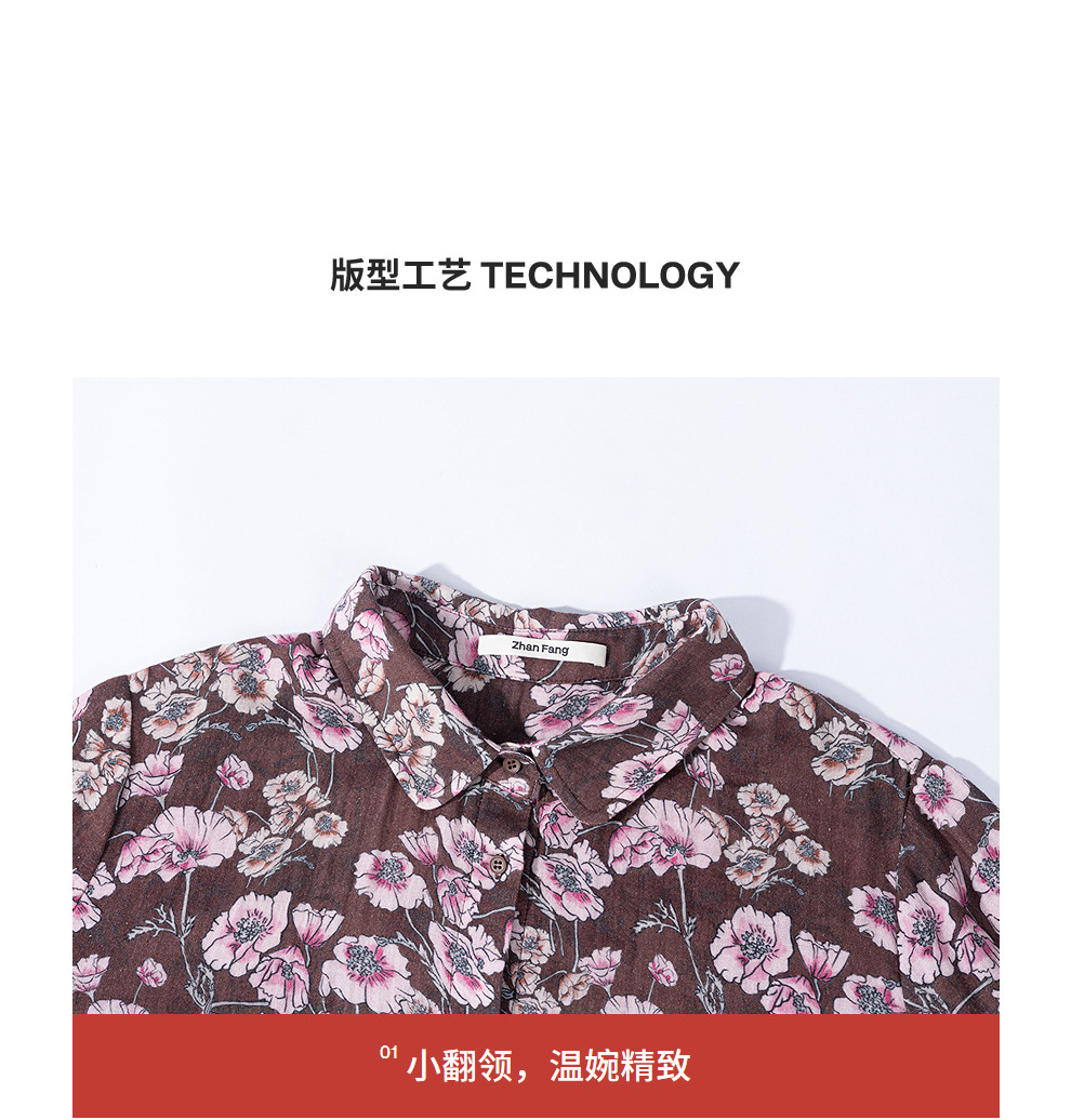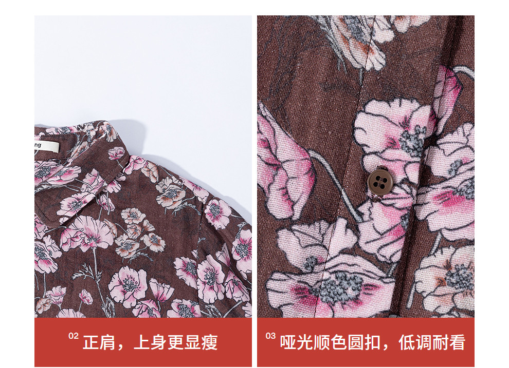 绽放029朵/"马上笑开花"衬衫·双纱微皱棉感花卉印花长袖衬衫女春